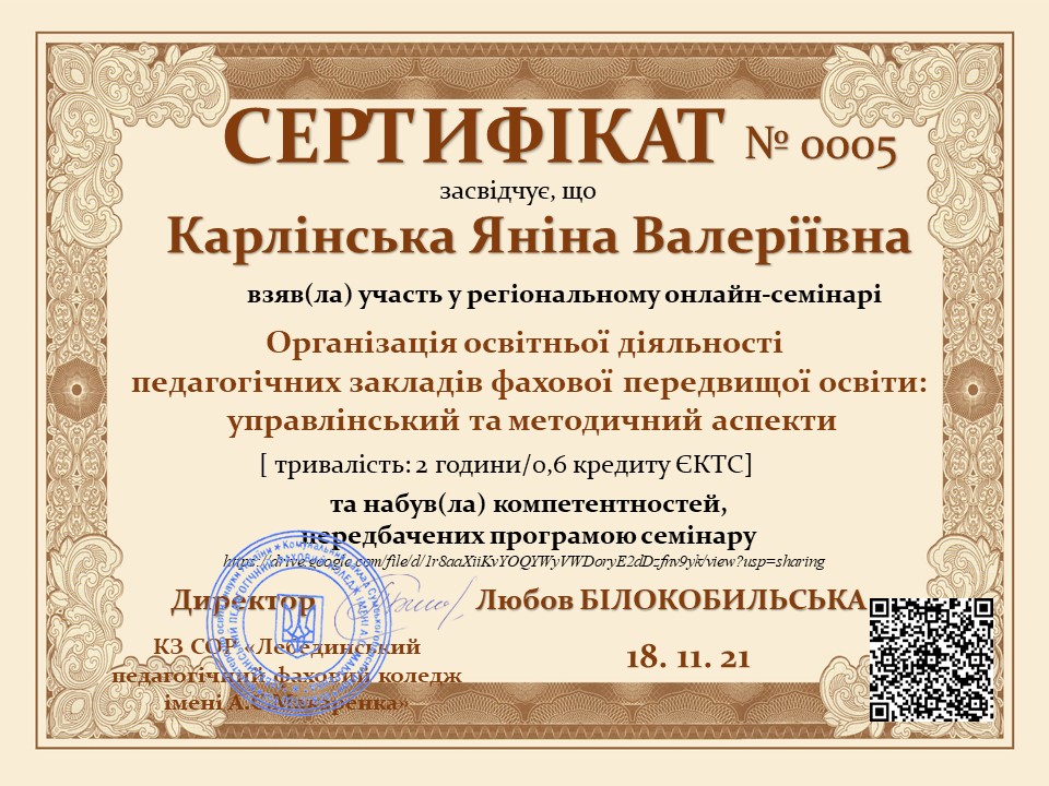 | 3861 | інше | Інший модуль | Certificate. Карлінська Я.В. Булінг.pdf | 14.02.2020 |