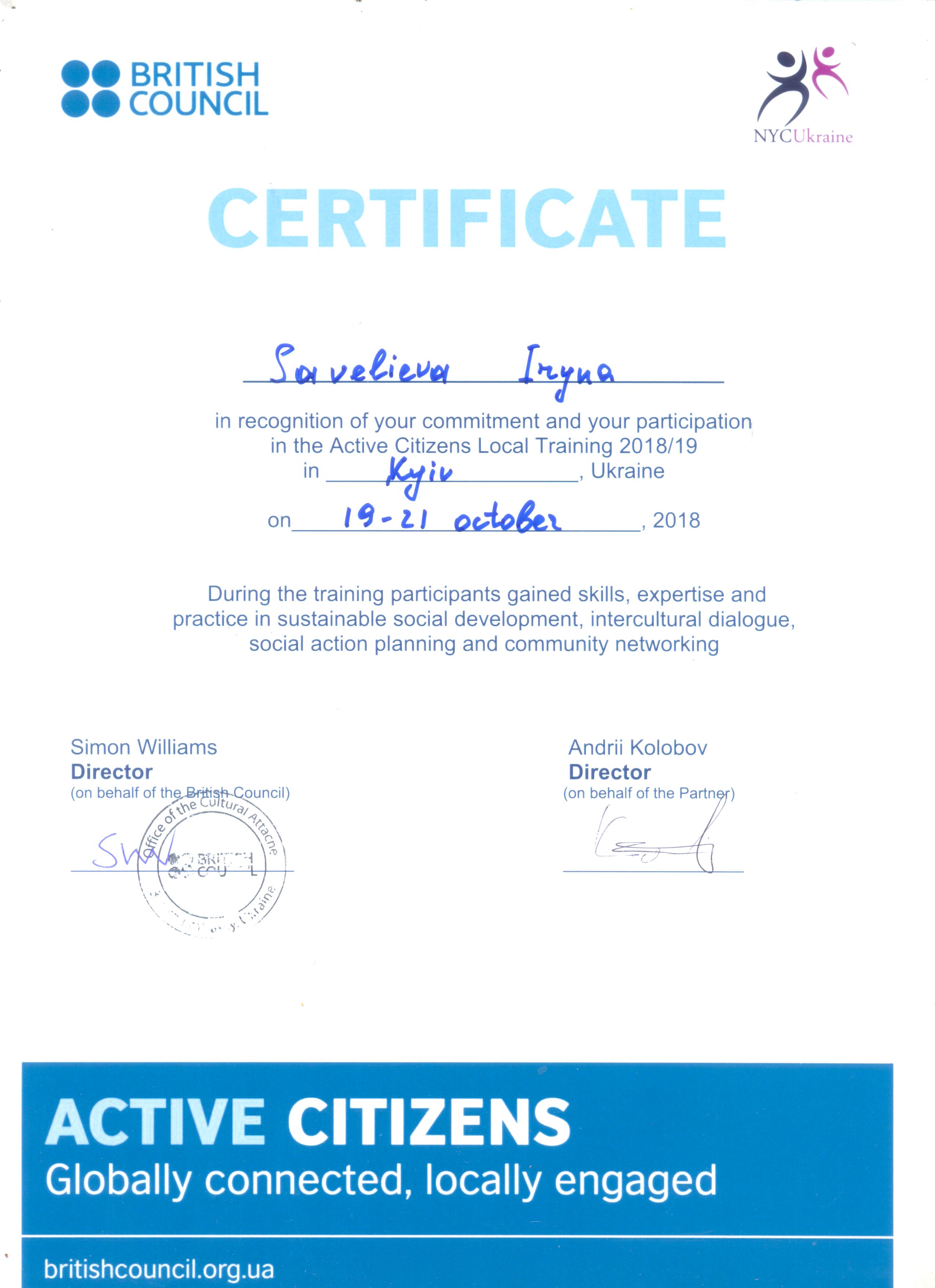 волонтер ГО "ВО "Патріот"Державна нагорода України - відзнака Президента України «За гуманітарну участь в антитерористичній операції»