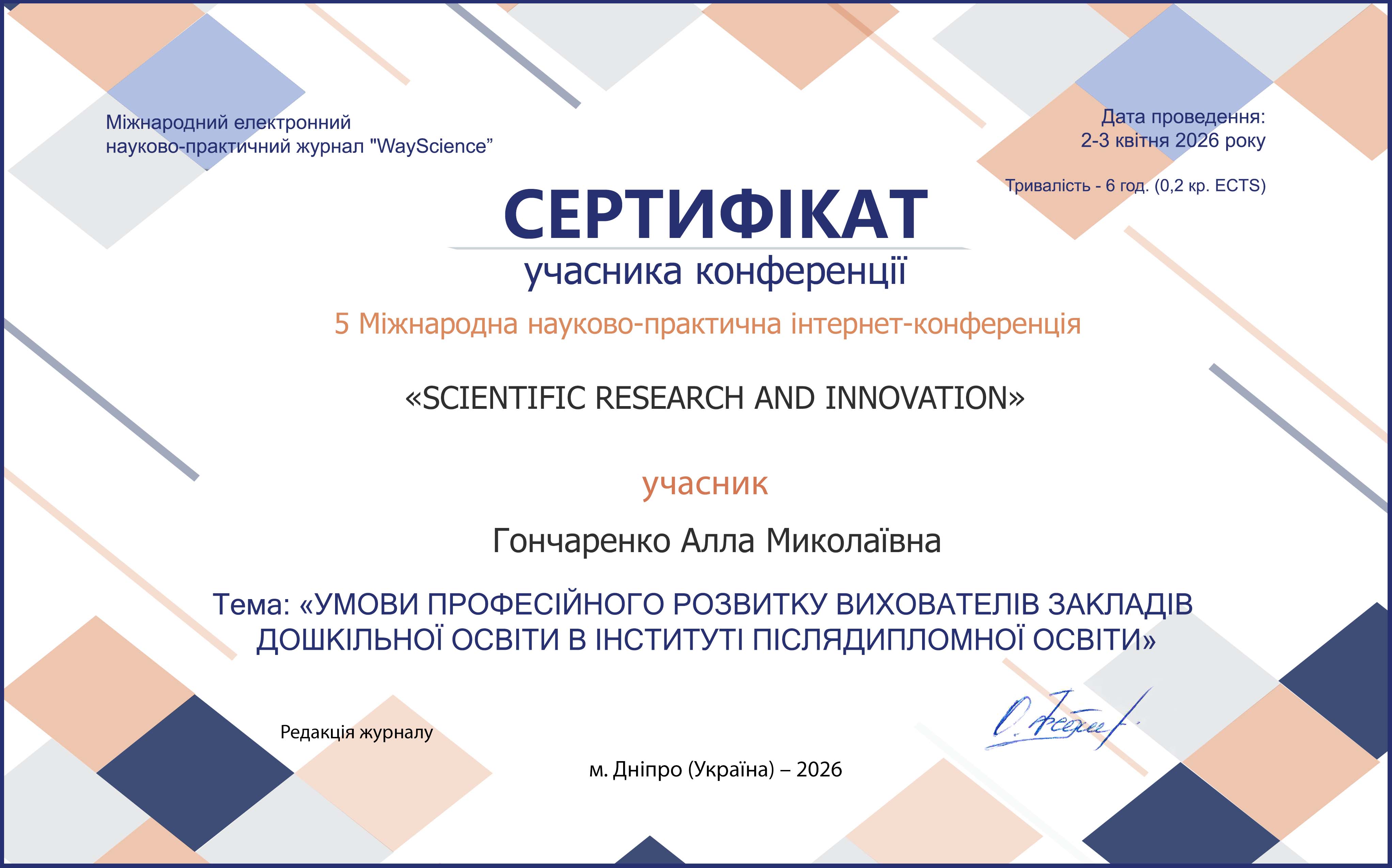 | 12195 | From Science to Practice: Innovations Across Life Domains | Педагогічне партнерство: від декларації до практики | м. Дніпро |
