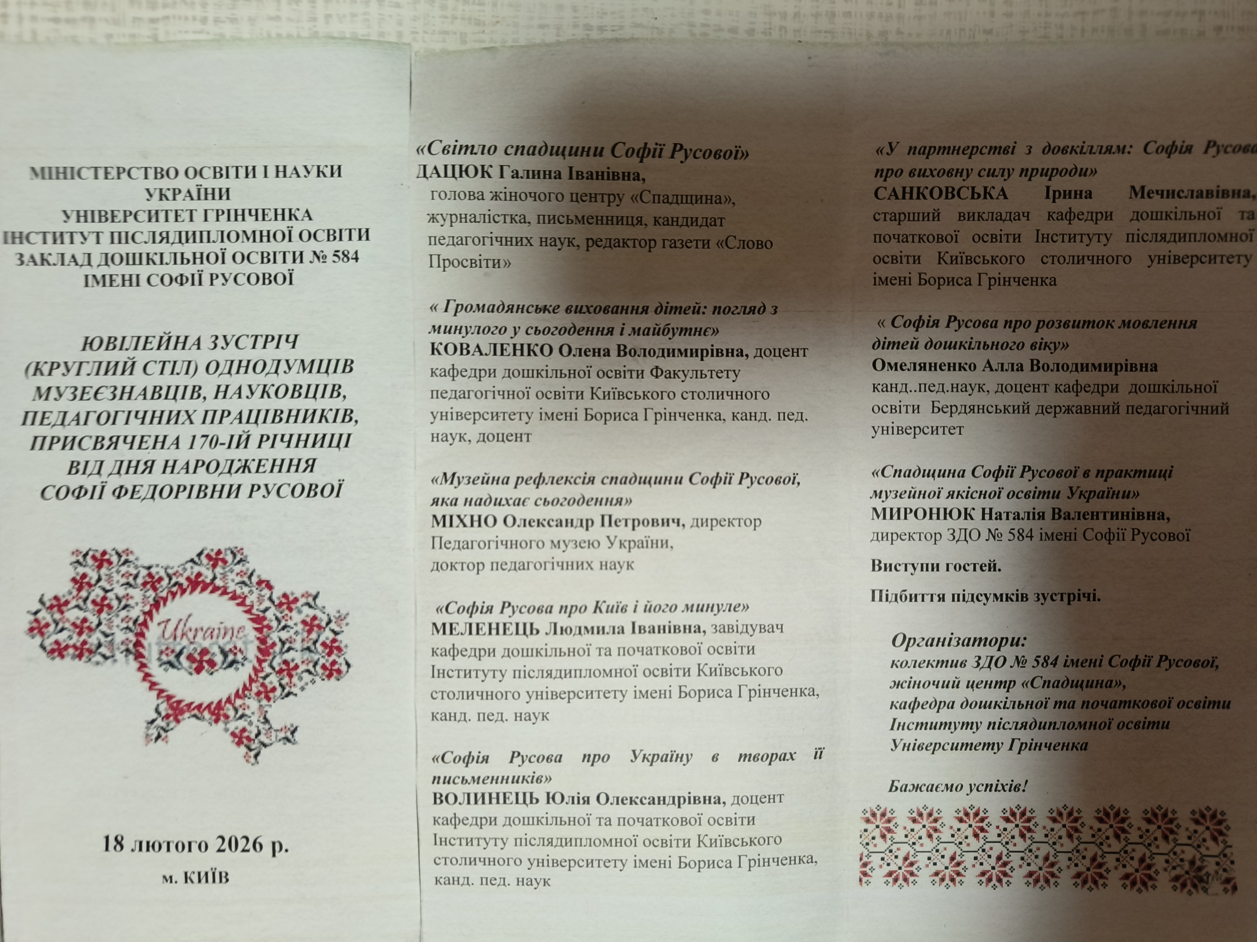 | 9806 | Всеукраїнський круглий стіл «Сучасний заклад дошкільної освіти: лідерство, диджиталізація, майбутній капітал» | - | Київський університет імені Бориса Грінченка |