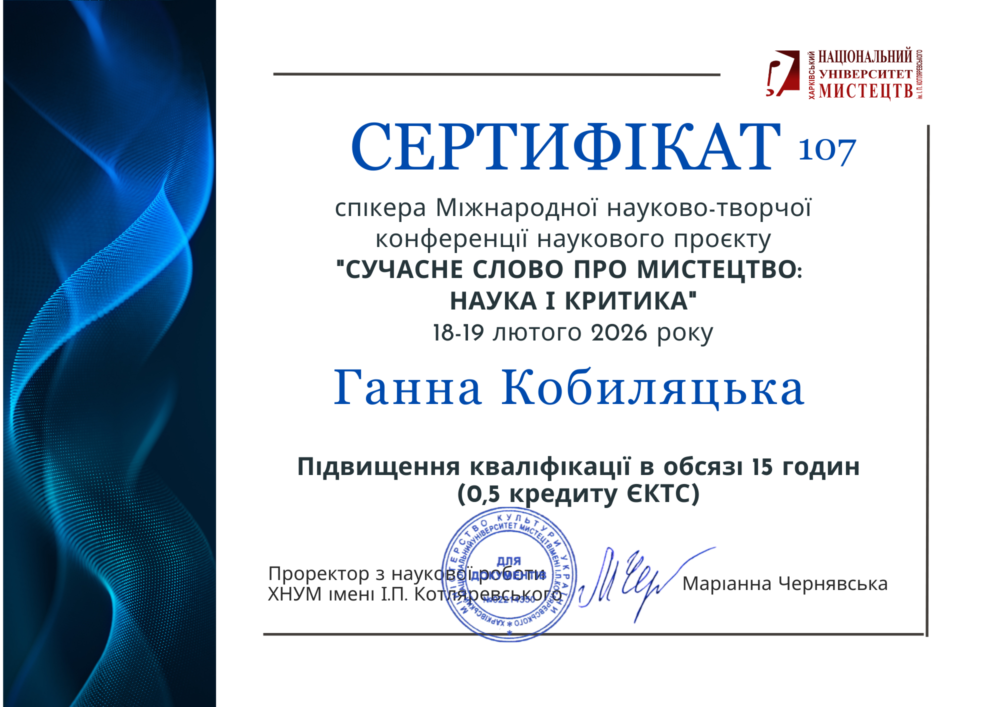 університет культури (КУК). Сценічне мистецтво. Диплом магістра