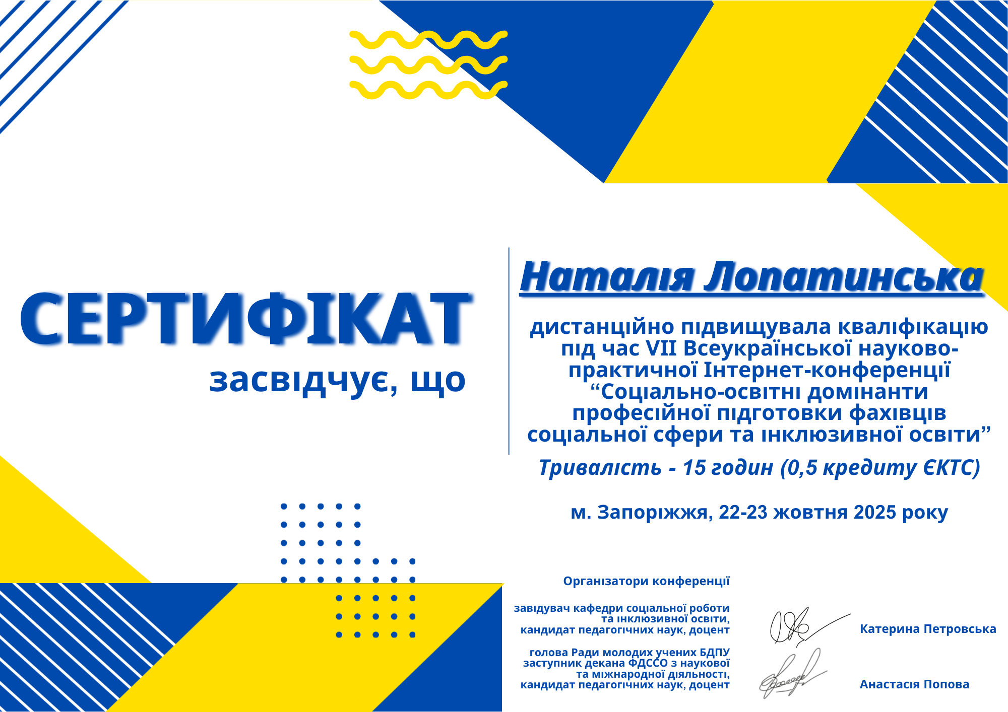 | 6601 | Фаховий модуль (стажування) | Фаховий модуль (за кордоном) | Nataliia Lopatynska.pdf | 06.07.2022 |