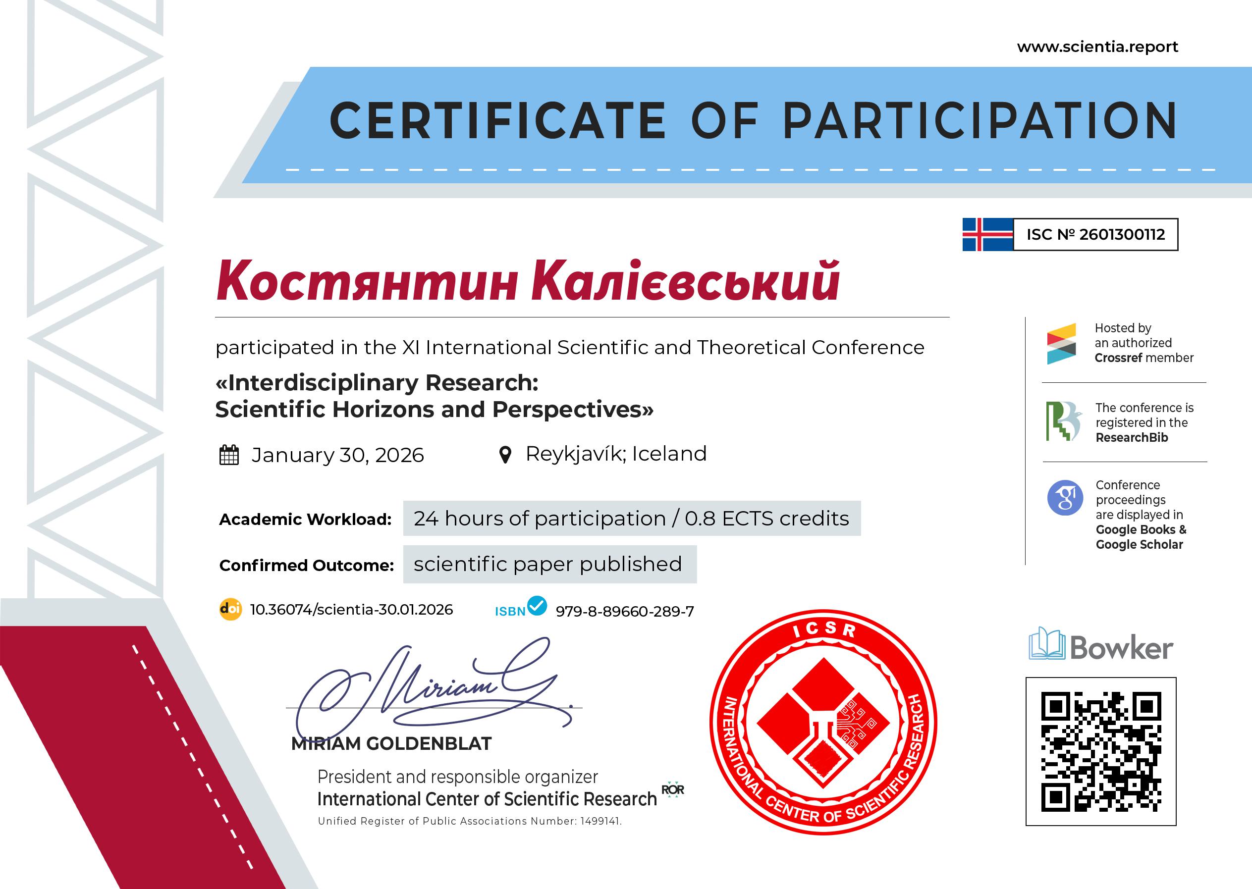 VII Міжнародна науково-теоретична конференція «Modern Vision of Implementing Innovations in Scientific Studies».