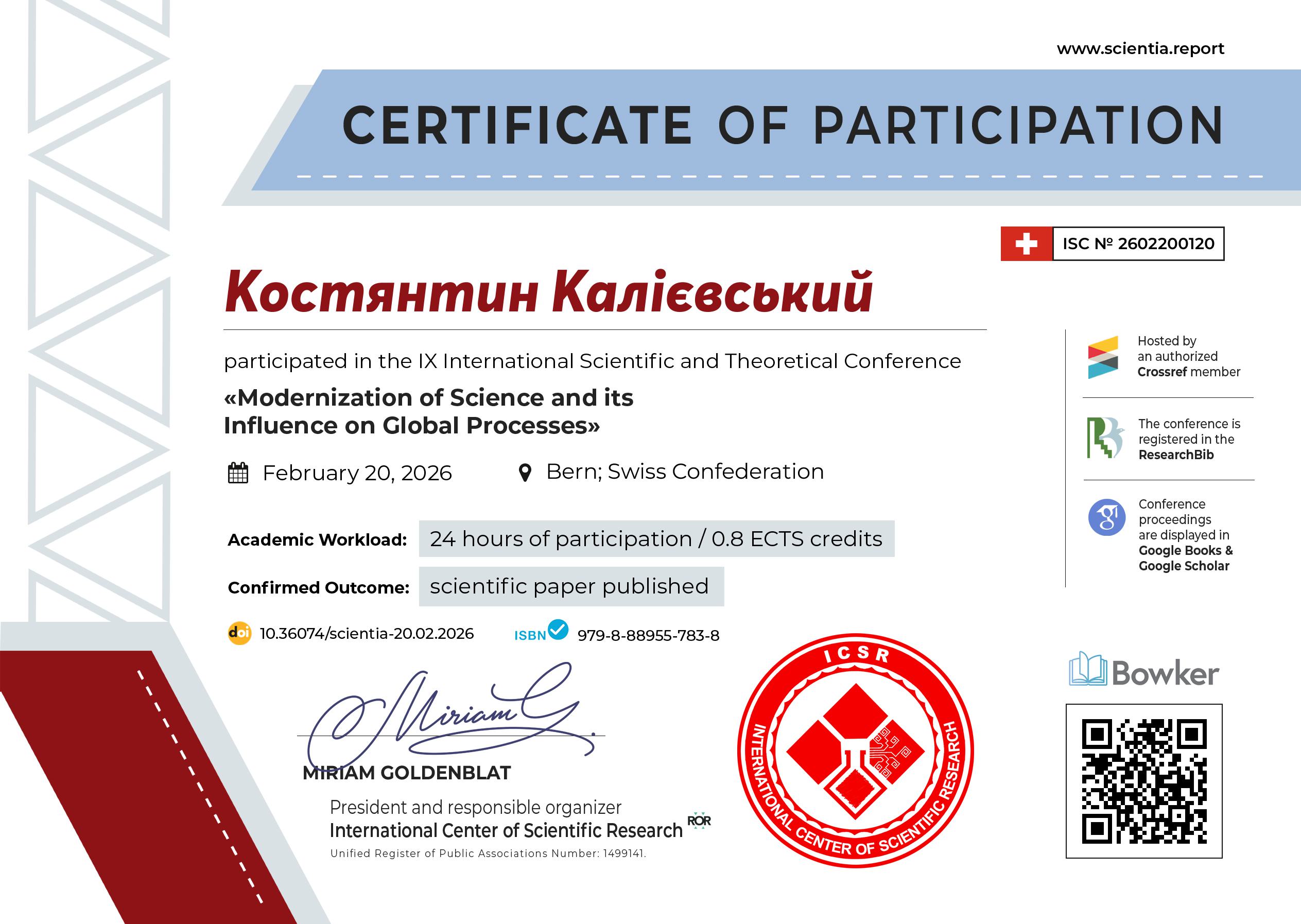 IX Міжнародна науково-теоретична конференція «Modernization of Science and its Influence on Global Processes»