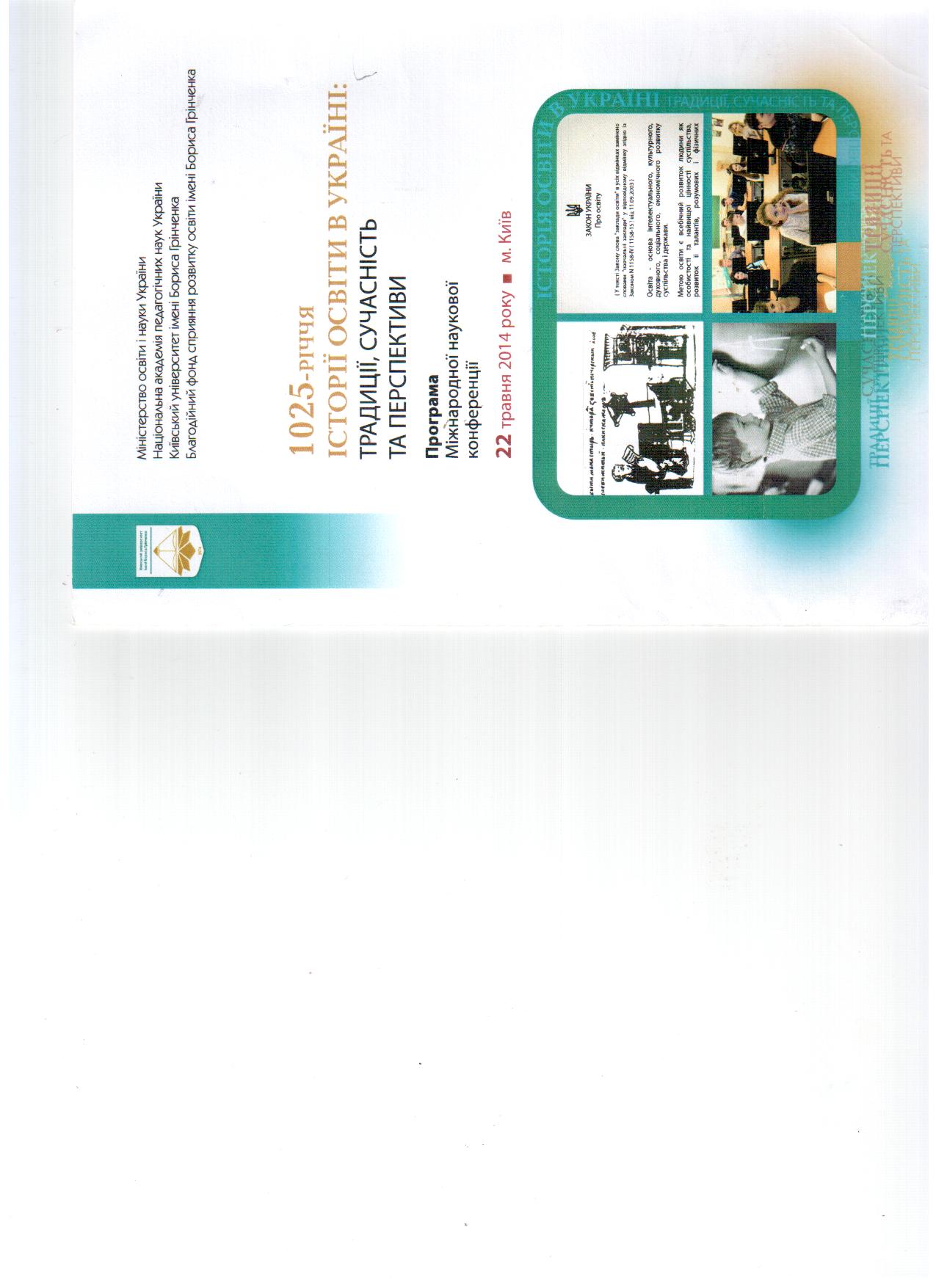 | 2275 | 1025-річчя історії освіти в Україні: традиції, сучасність та перспективи | Етапи становлення системи підвищення кваліфікації вчителів для народних шкіл в Україні другої половини ХІХ- початку ХХ ст. | київ |