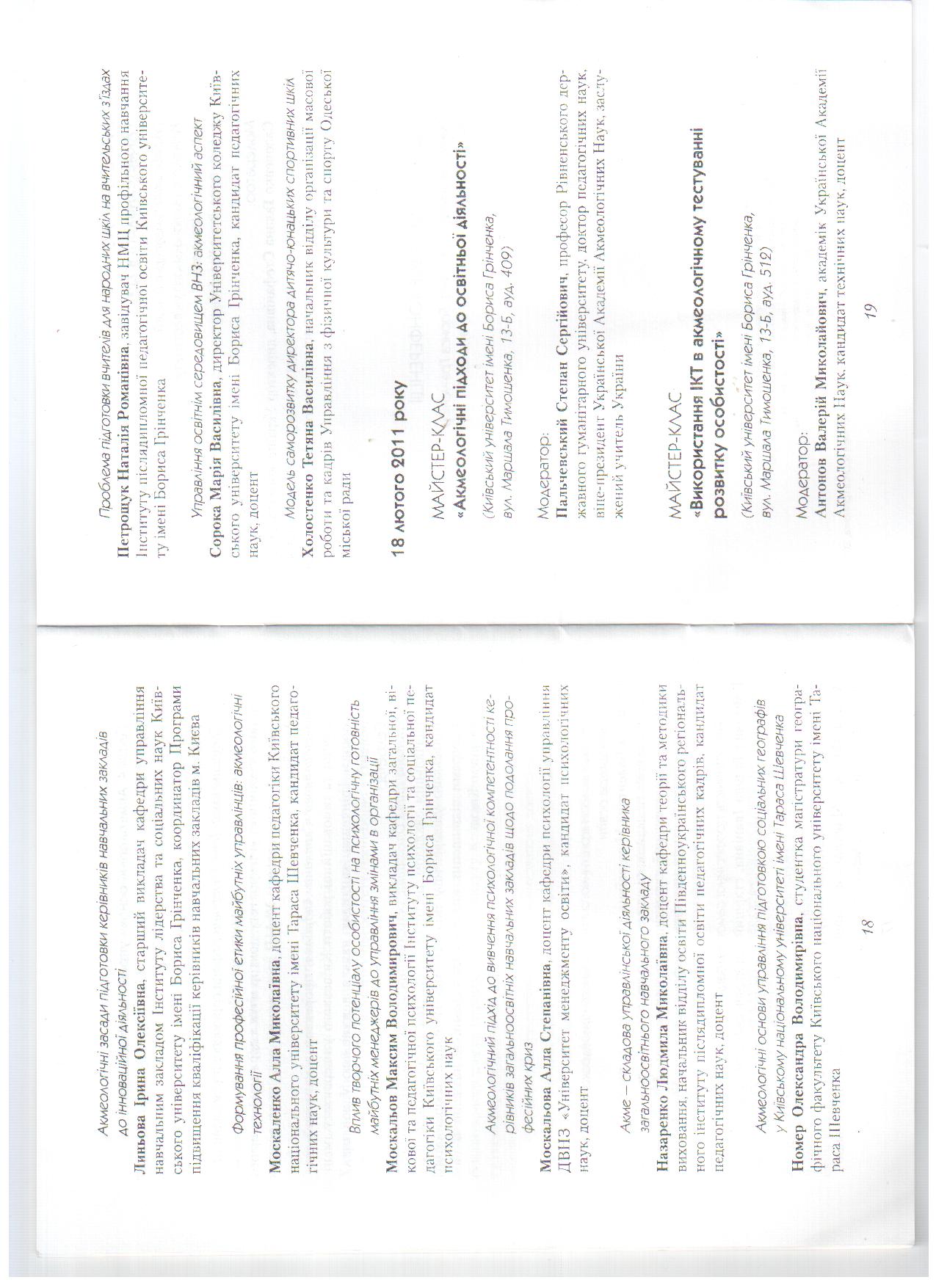 | 2276 | Акмеологія - наука ХХІ століття | Проблема підготовки вчителів для народних шкіл на вчительських з'їздах | Київ |