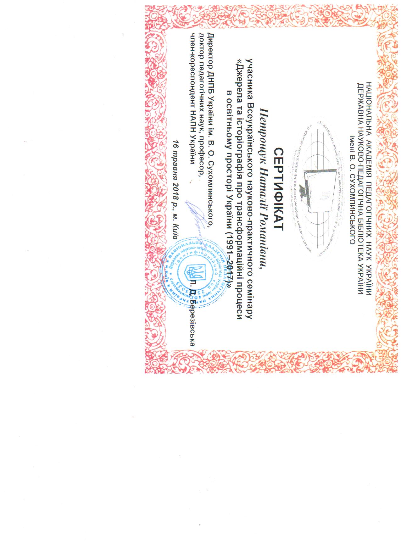 | 693 | Інститут післядипломної освіти | Кафедра історичної та громадянської освіти | 3.2 | 3 | 2021 | https://www.researchgate.net/profile/Natalia-Petroshchuk |
