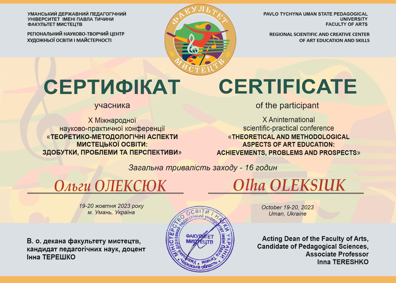 VI Міжнародна науково-практична конференція "Теоретико-методологічні аспекти мистецької освіти: здобутки, проблеми та перспективи"