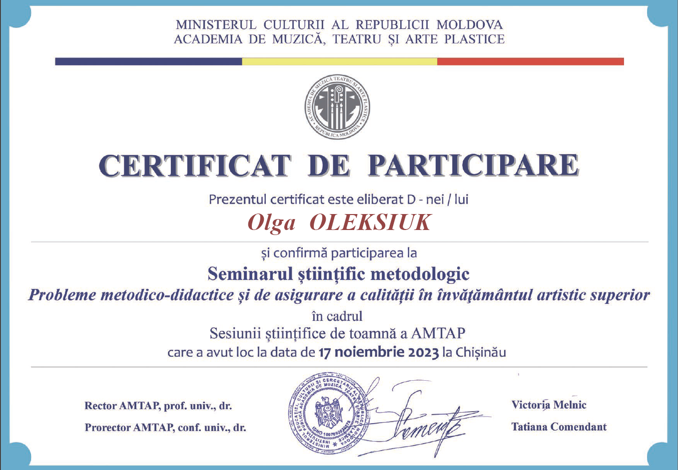 2 майстер-класи (4 години) у рамках IV Міжнародної науково-практичної конференції "Мистецька освіта в європейському соціокультурному просторі ХХІ століття"