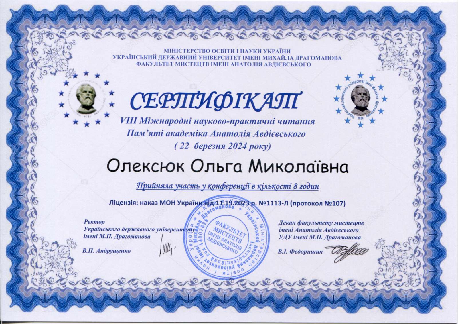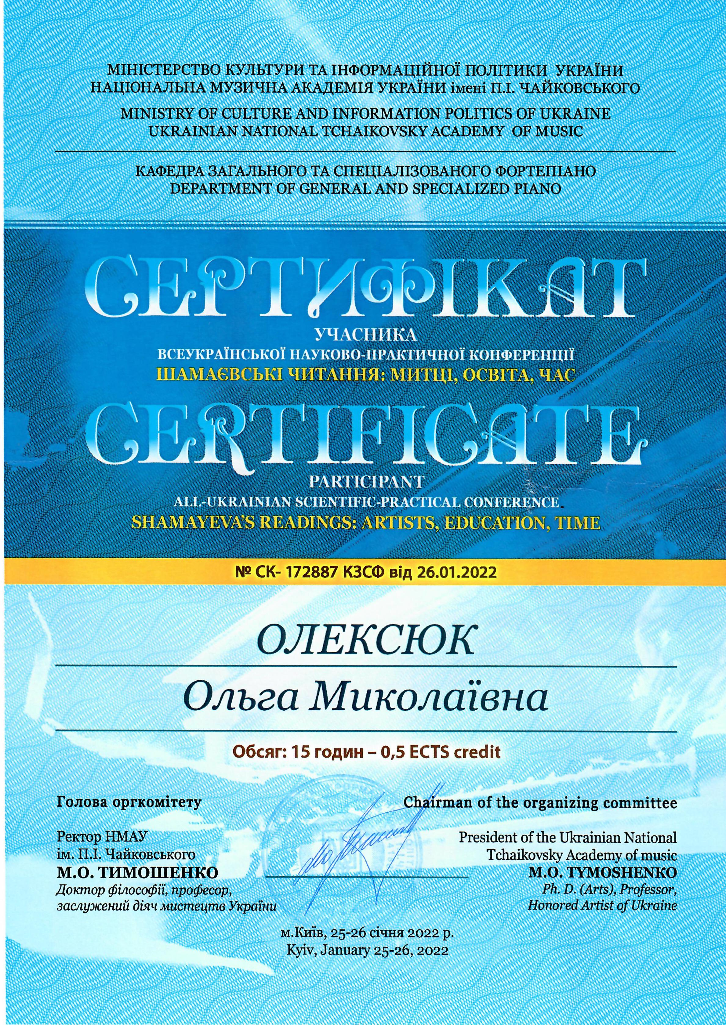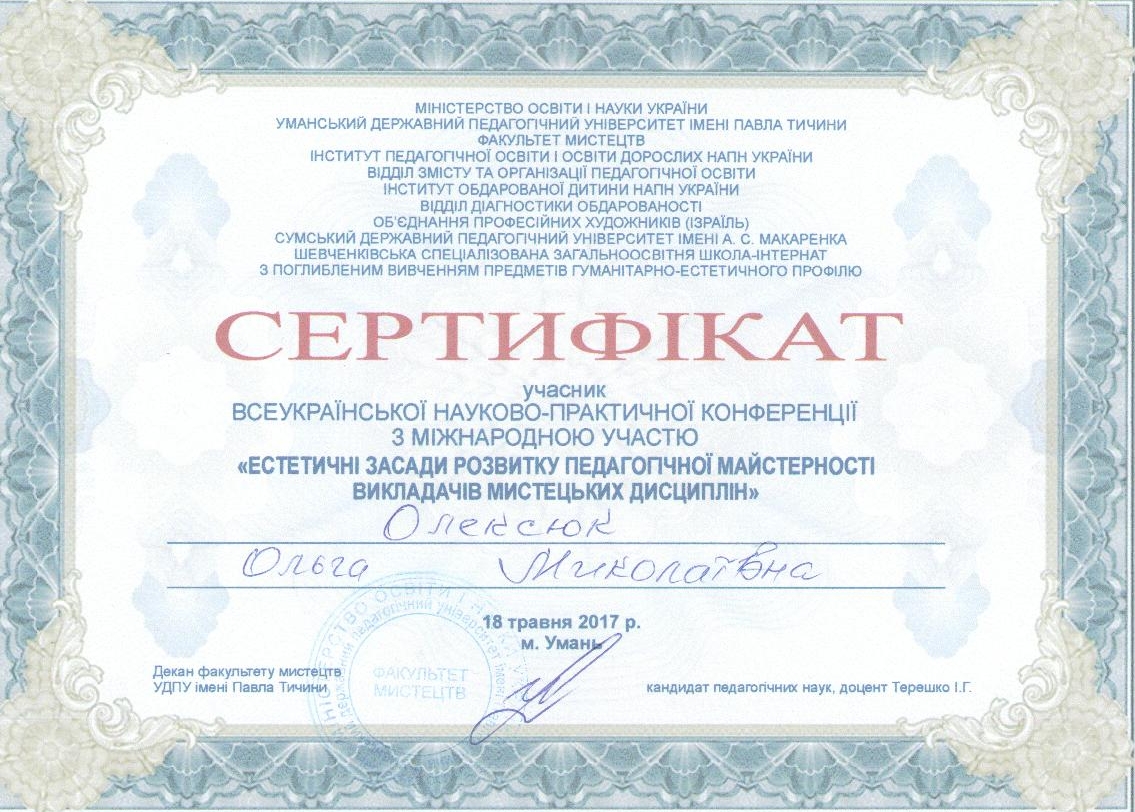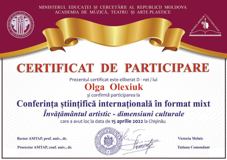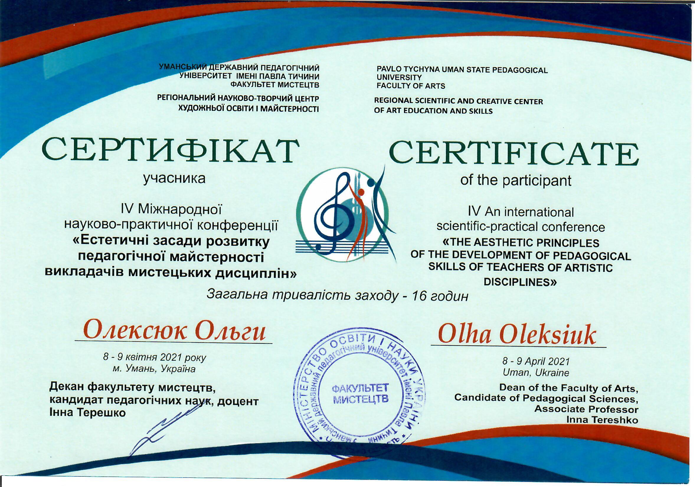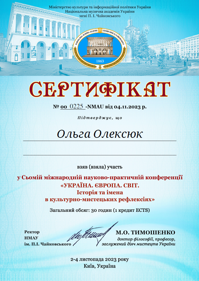 Всеукраїнська науково-практична конференція з міжнародною участю "Естетичні засади розвитку педагогічної майстерності викладачів мистецьких дисциплін""