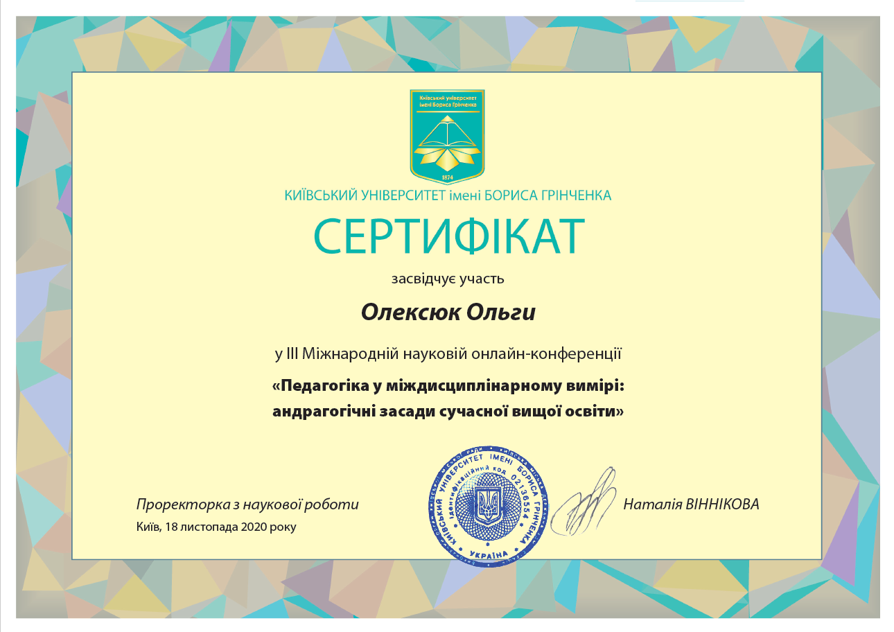ІІІ Міжнародна наукова онлайн-конференція "ПЕДАГОГІКА У МІЖДИСЦИПЛІНАРНОМУ ВИМІРІ: АНДРАГОГІЧНІ ЗАСАДИ СУЧАСНОЇ ВИЩОЇ ОСВІТИ"
