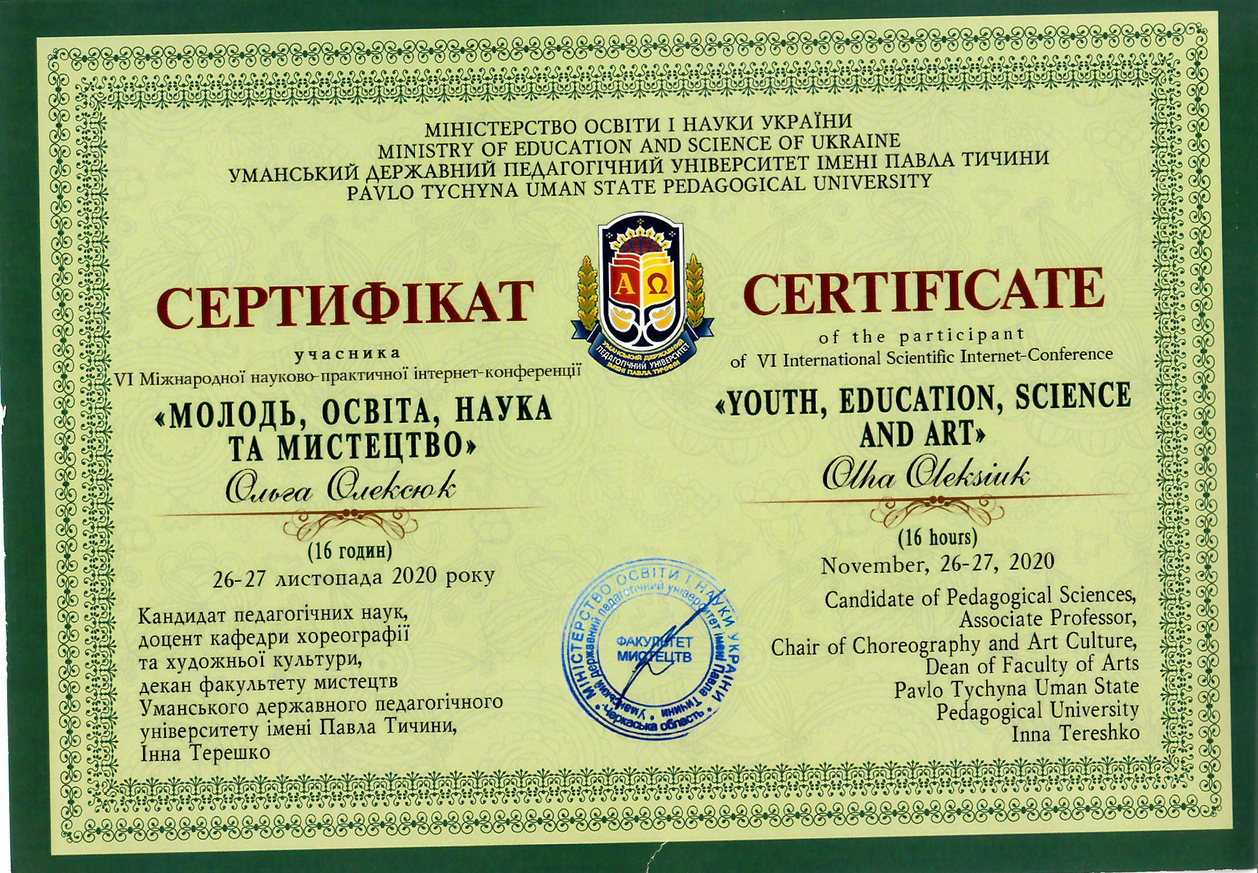 VI Міжнародна науково-практична інтернет-конференція "Молодь, освіта, наука та мистецтво"