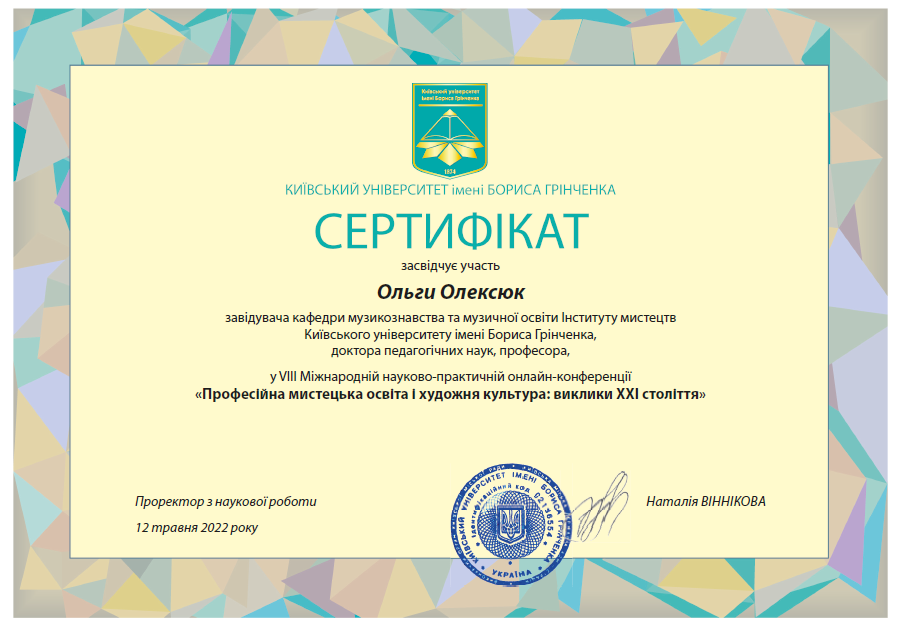 Грінченкознавчі практики у вимірах вищої мистецької освіти
