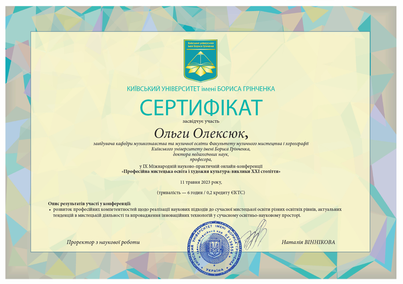 VI Міжнародна науково-практична конференція "Професійна мистецька освіта і художня культура: виклики ХХІ століття"