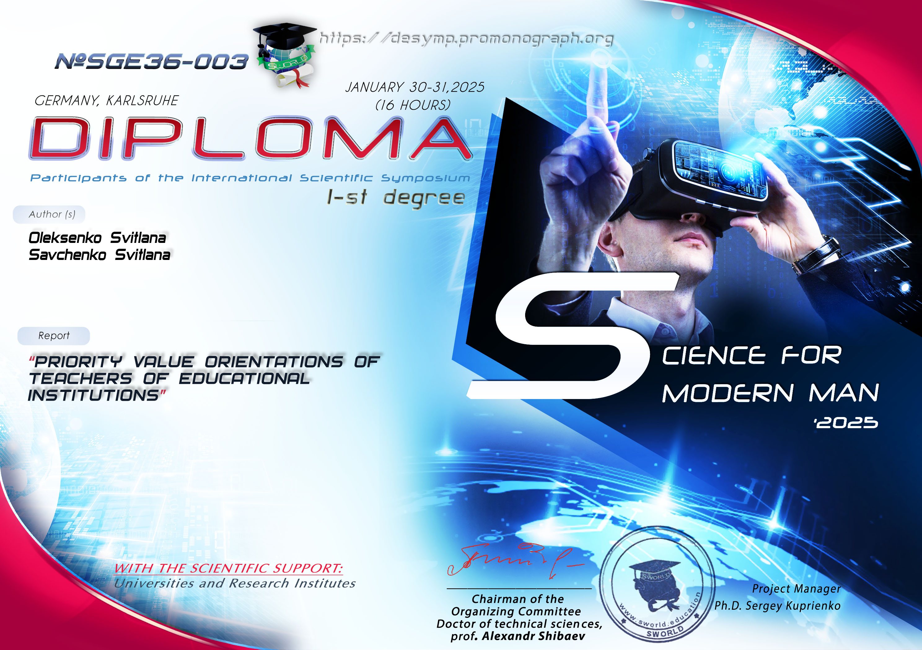 | 11941 | Science for modern man'2025 | Priority value orientations of teachers of educational institutions | Karlsruhe, Germany |