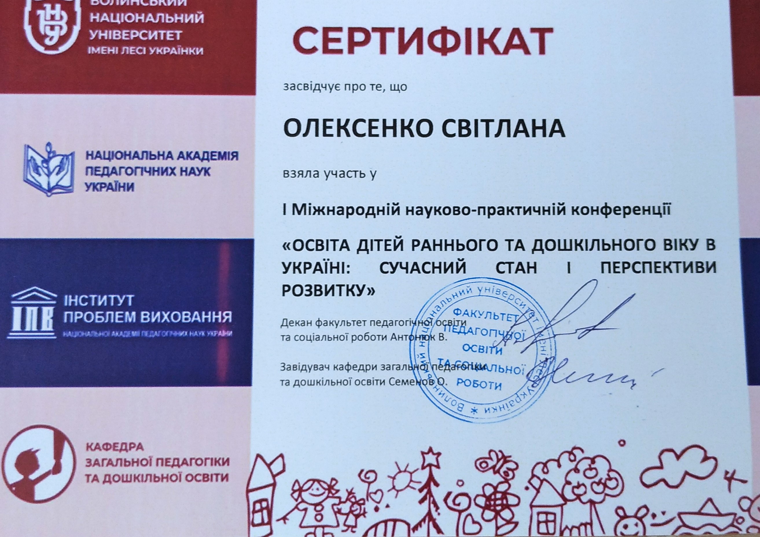 | 6974 | І Міжнародна науково-практична конференція "Освіта дітей раннього та дошкільного віку в Україні: сучасний стан і перспективи розвитку" | Становлення складових психомоторного розвитку у дітей раннього віку: можливості впливу | Луцьк |