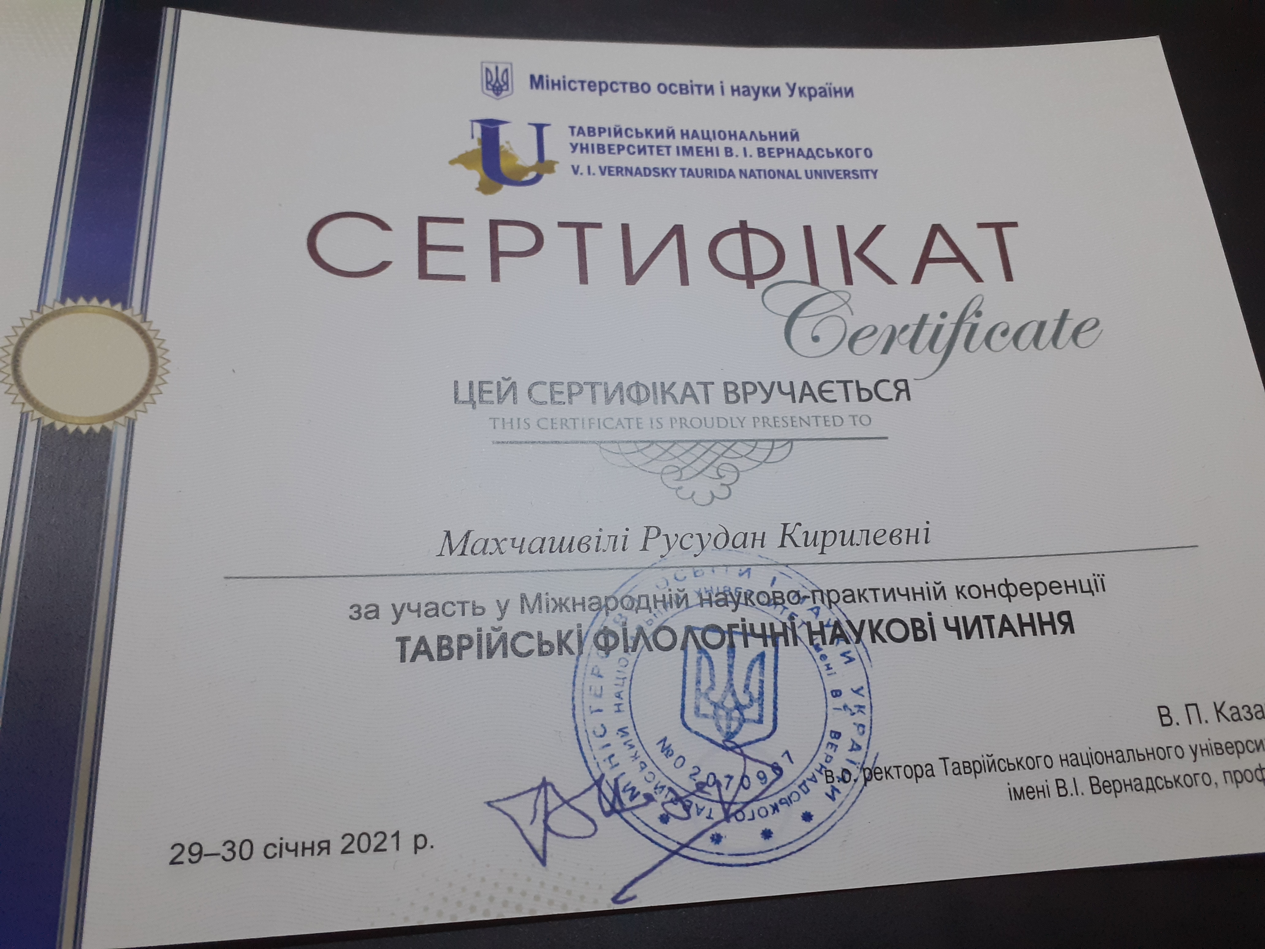 | 22 | Кафедра романської філології | C-2077-2016 | 3 | 1 | 2021 | https://publons.com/researcher/1499008/rusudan-makhachashvili/ |