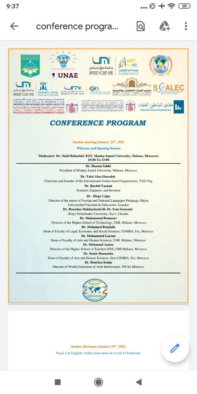 | 7897 | First International Conference on Technology, Law and Education | Keynote: Event Horizon of Digital Education and Language Acquisition | Morocco |