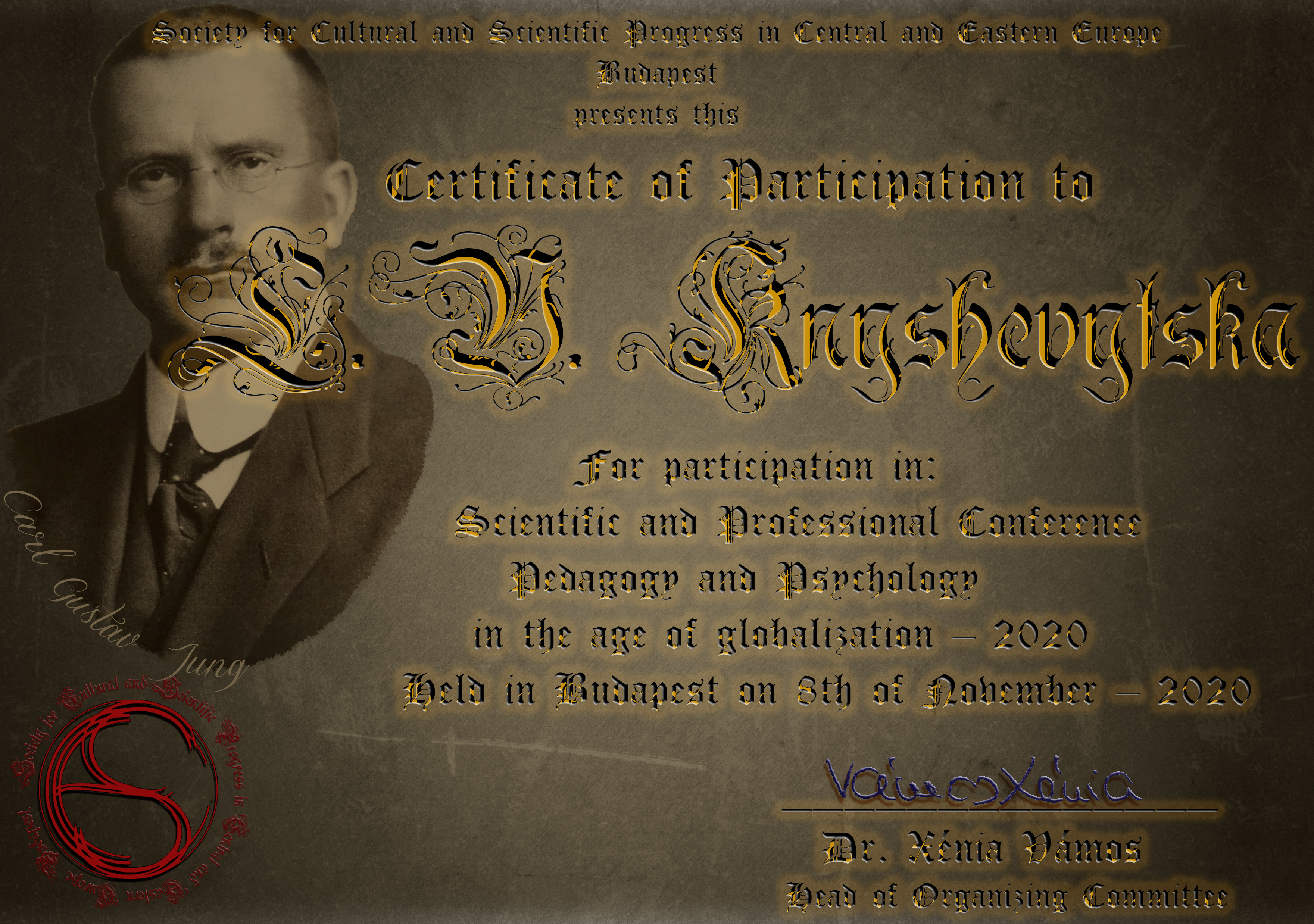 | 6210 | Scientific and Professional Conference Pedagogy and Psychology in the age of globalization | Narratives of Personal Experience acress Gender | Будапешт, Угорщина |