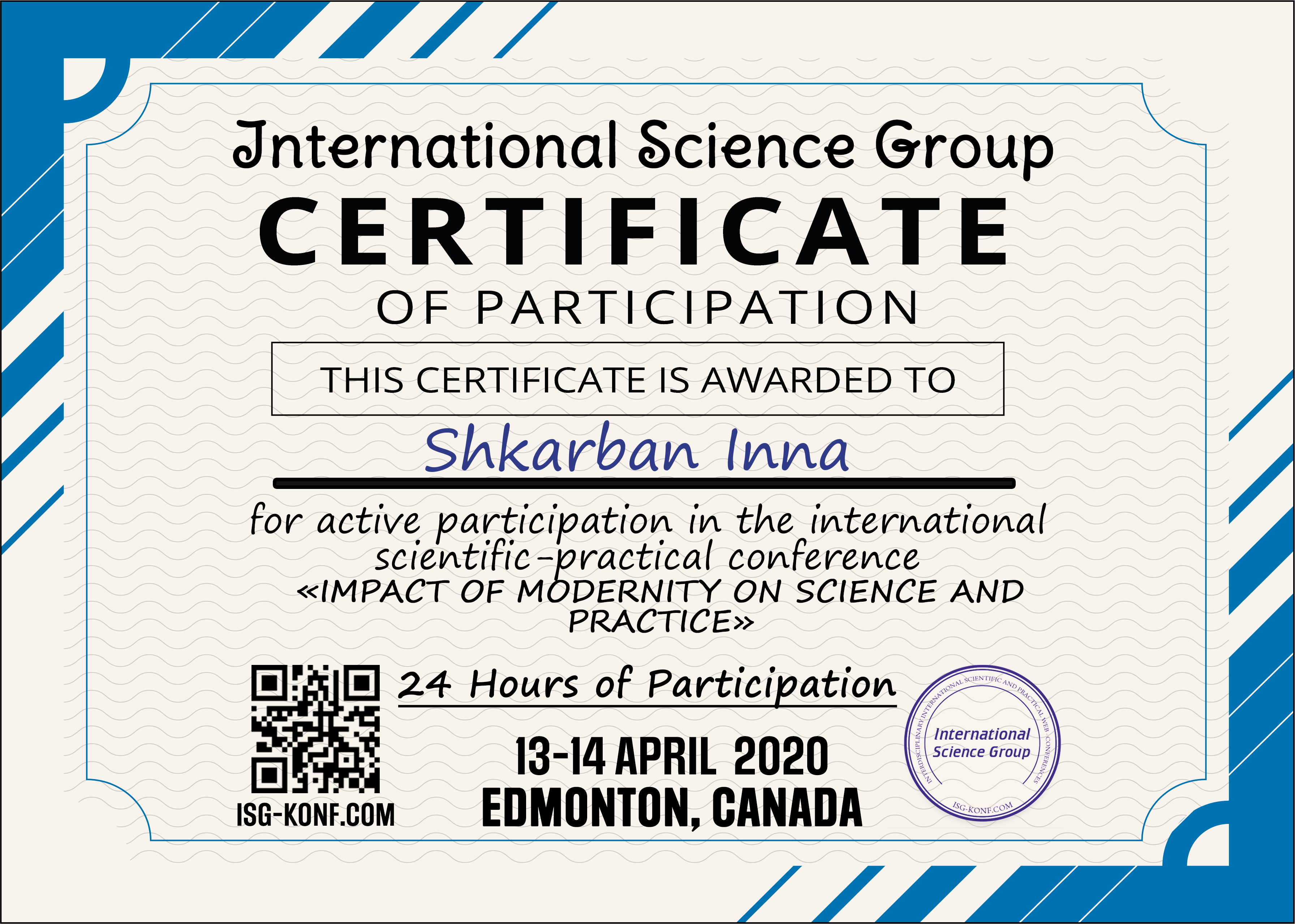 | 5248 | ХII Міжнародна науково-практична конференція “IMPACT OF MODERNITY ON SCIENCE AND PRACTICE” | Concept mapping strategy in students' foreign language learning academic performance | Едмонтон, Канада |
