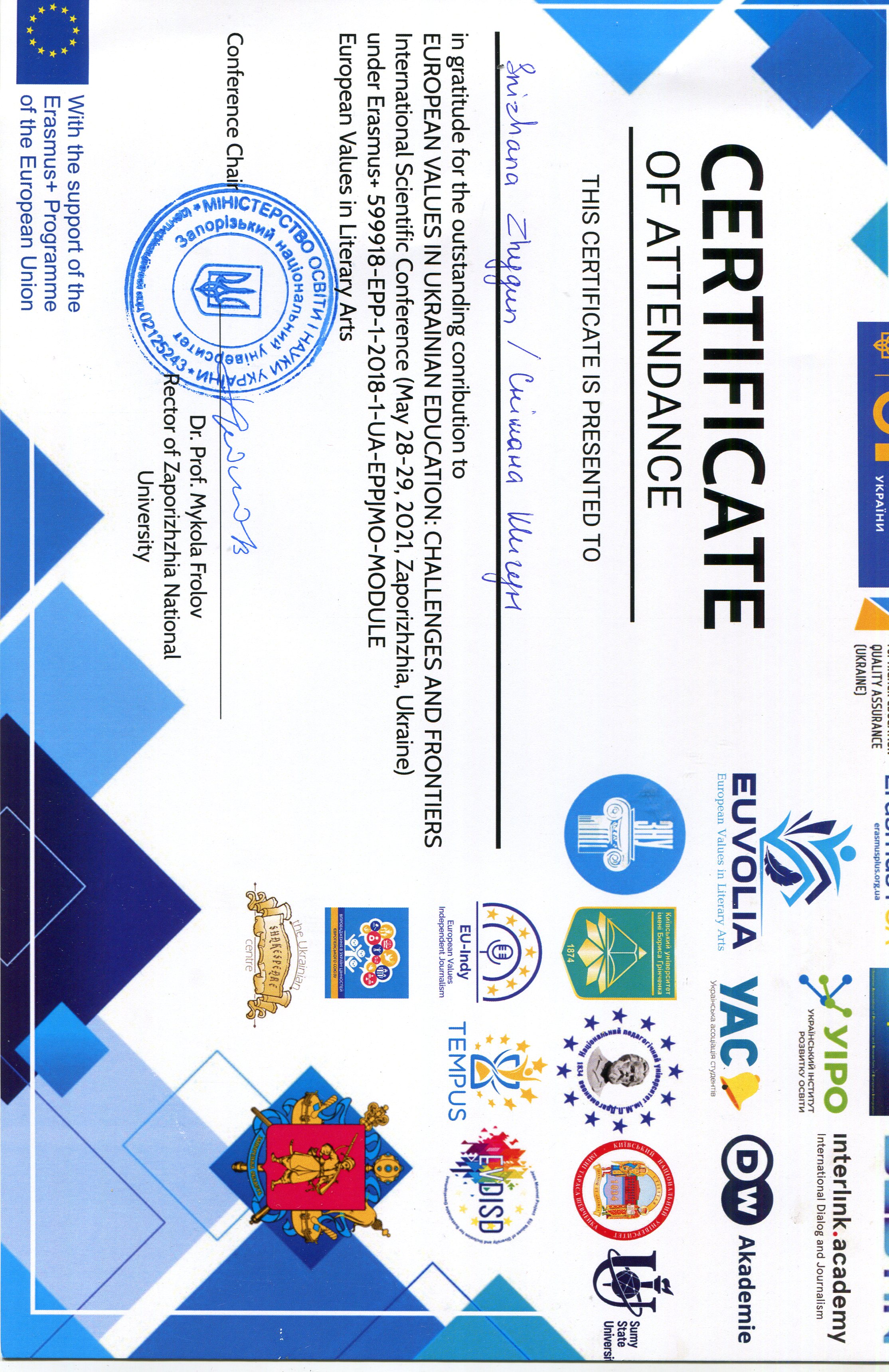 | 7181 | Європейські цінності в українській освіті: виклики і перспективи | Gender-Oriented Strategy of Philological Higher Education: Experience and Challenges | Запорізький національний університет |