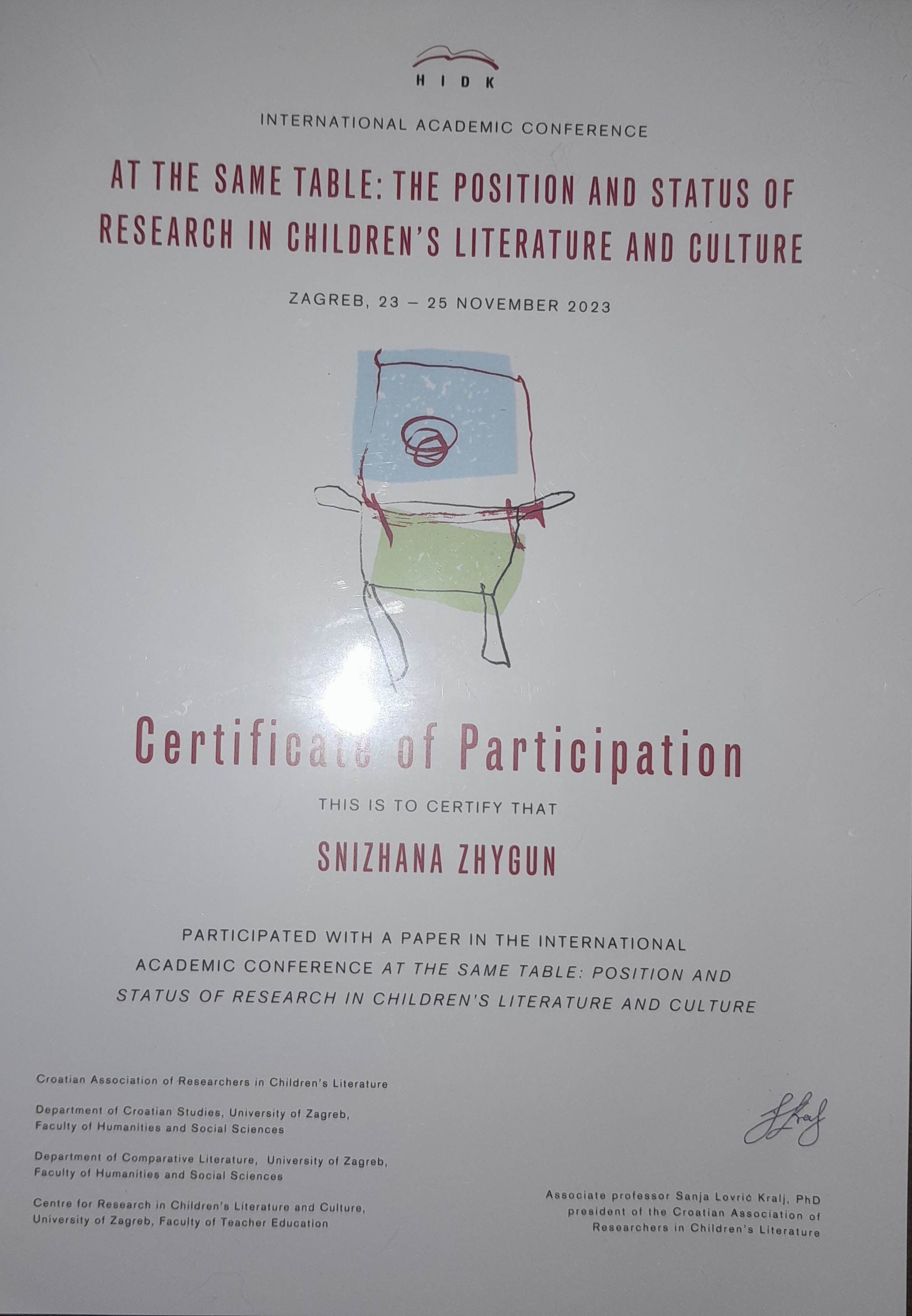 | 9872 | At the same table: the position and status of research in children`s literature and culture | The influence of the Ukrainization policy (1923-1932) on children`s literature in Ukraine | University of Zagreb |