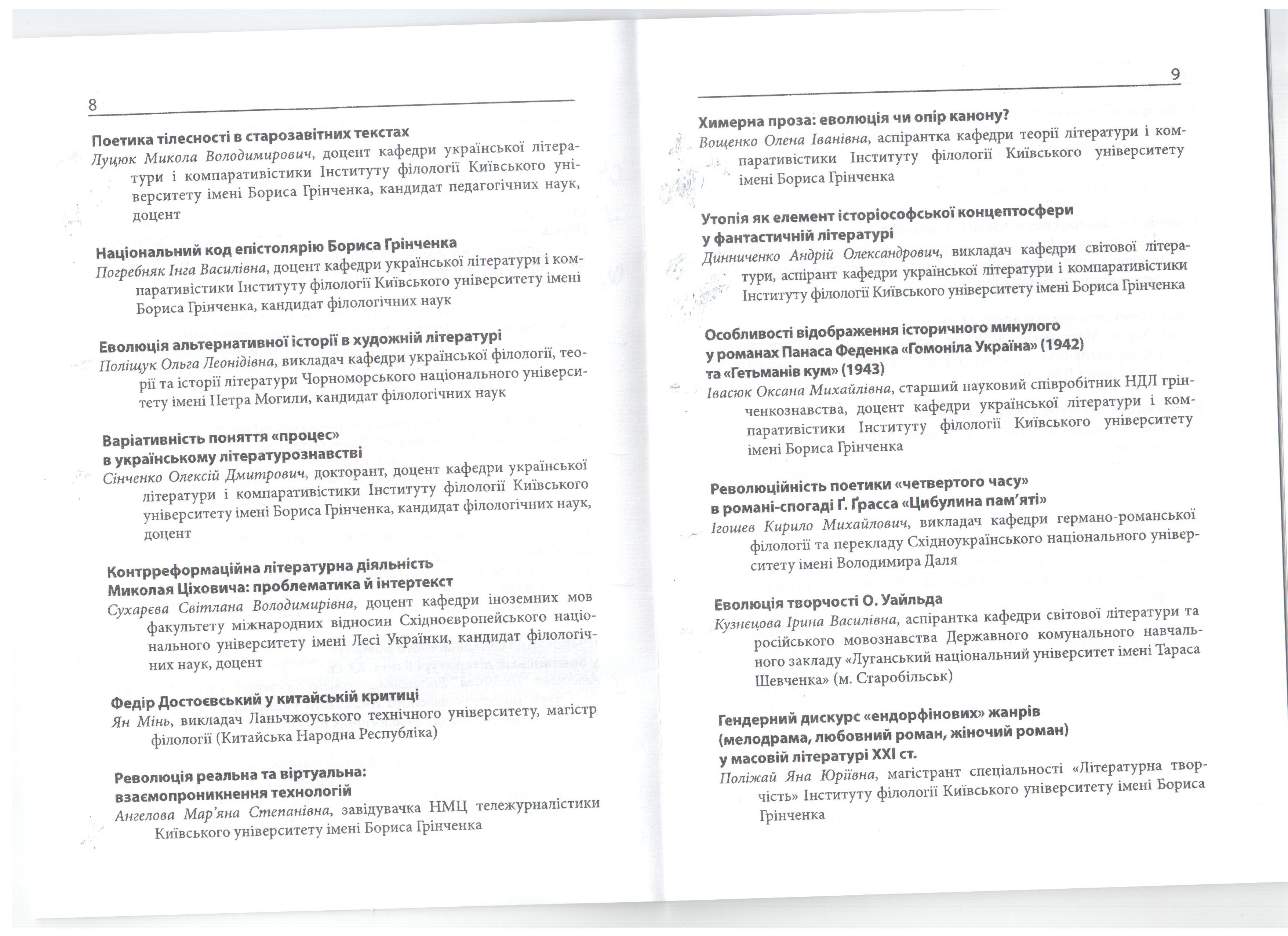 | 21004 | Інтимно-особистісні коди епістолярію інтелігенції кінця XIX –XX століть | |