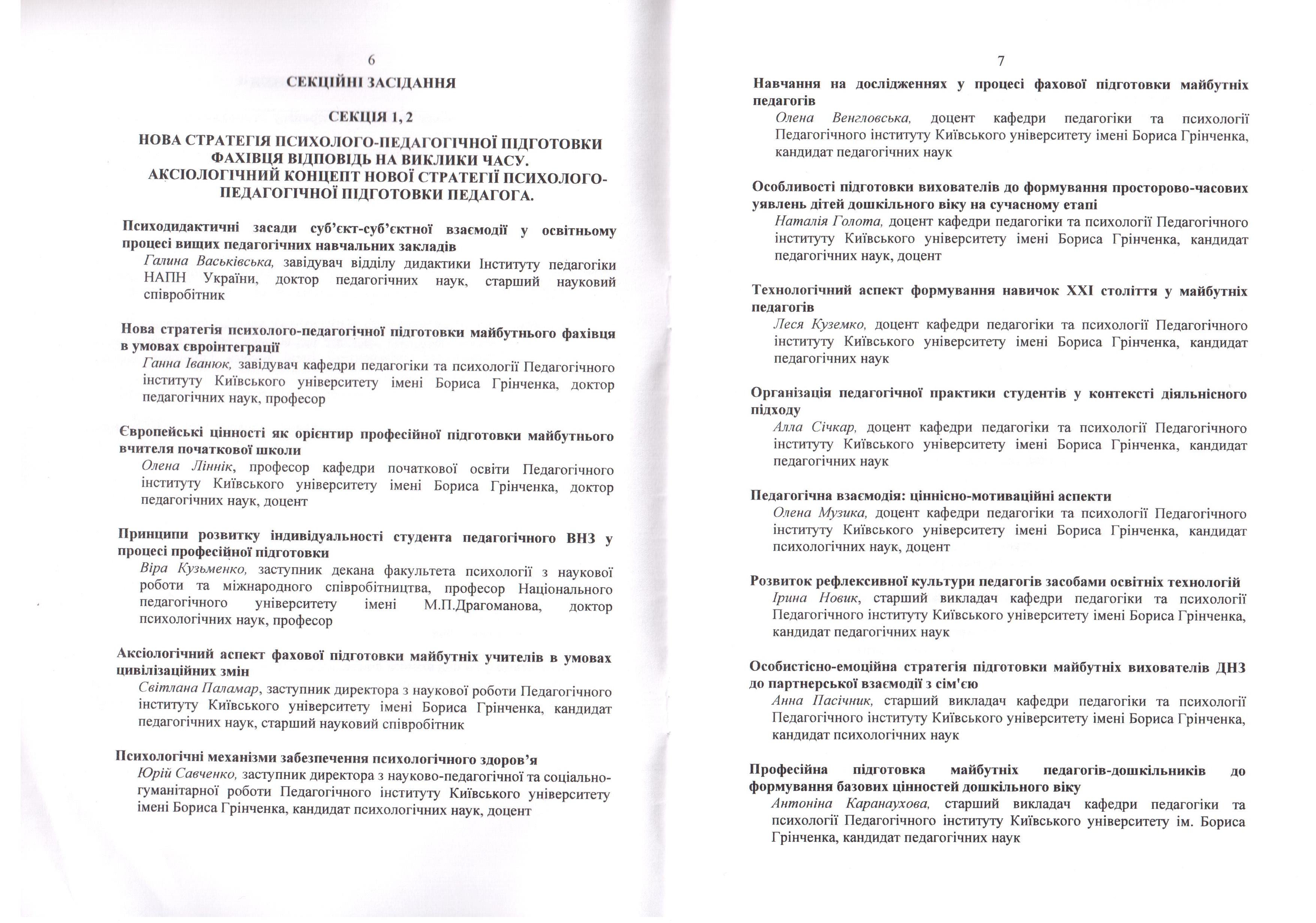 | 7994 | V Міжнародна науково-практична конференція "Інноваційні технології в дошкільній освіті" | Сучасні педагогічні технології формування наскрізних умінь майбутніх фахівців дошкільного профілю у контексті реалізації освітніх стандартів | м. Переяслав | document.pdf | |