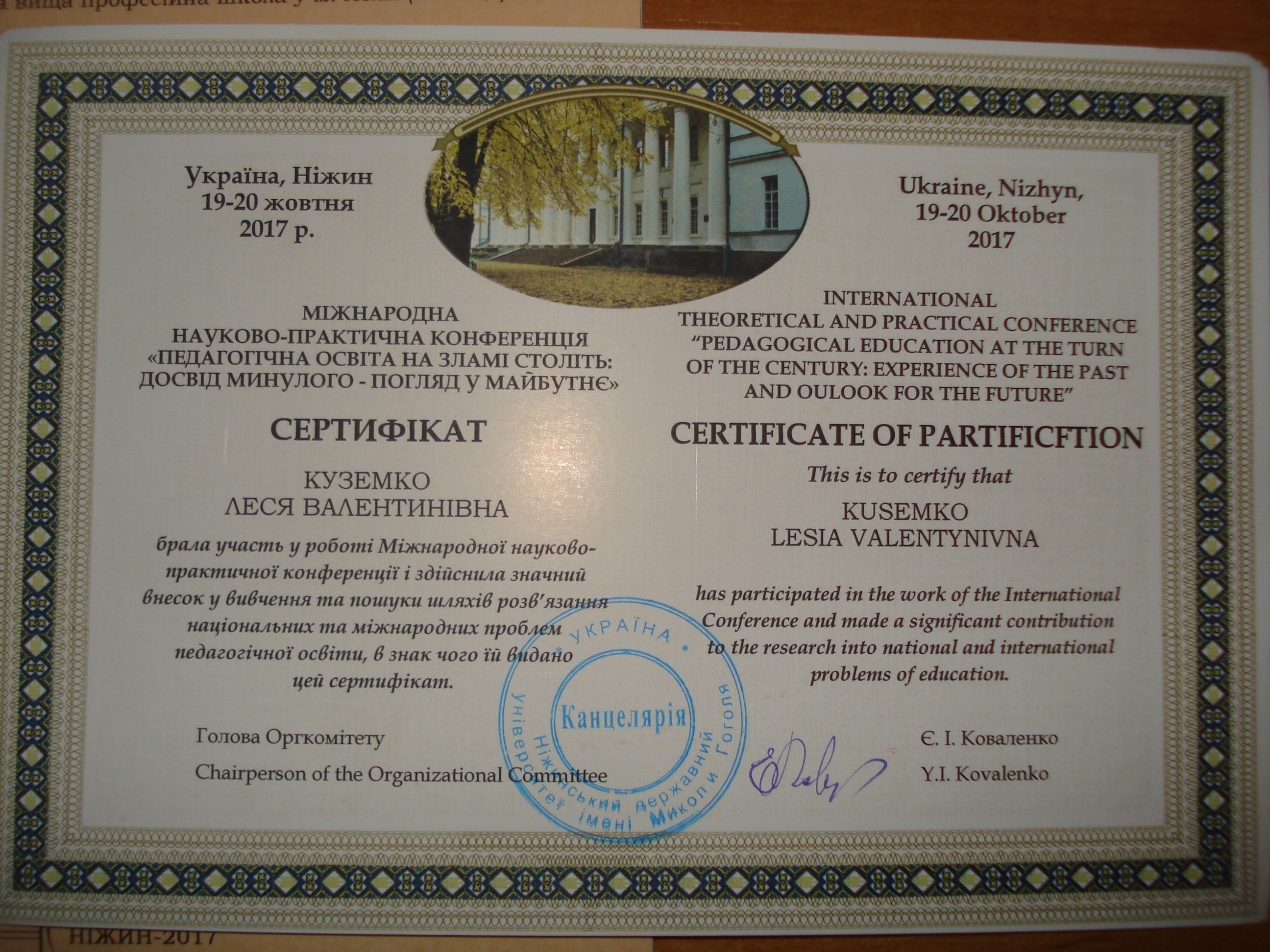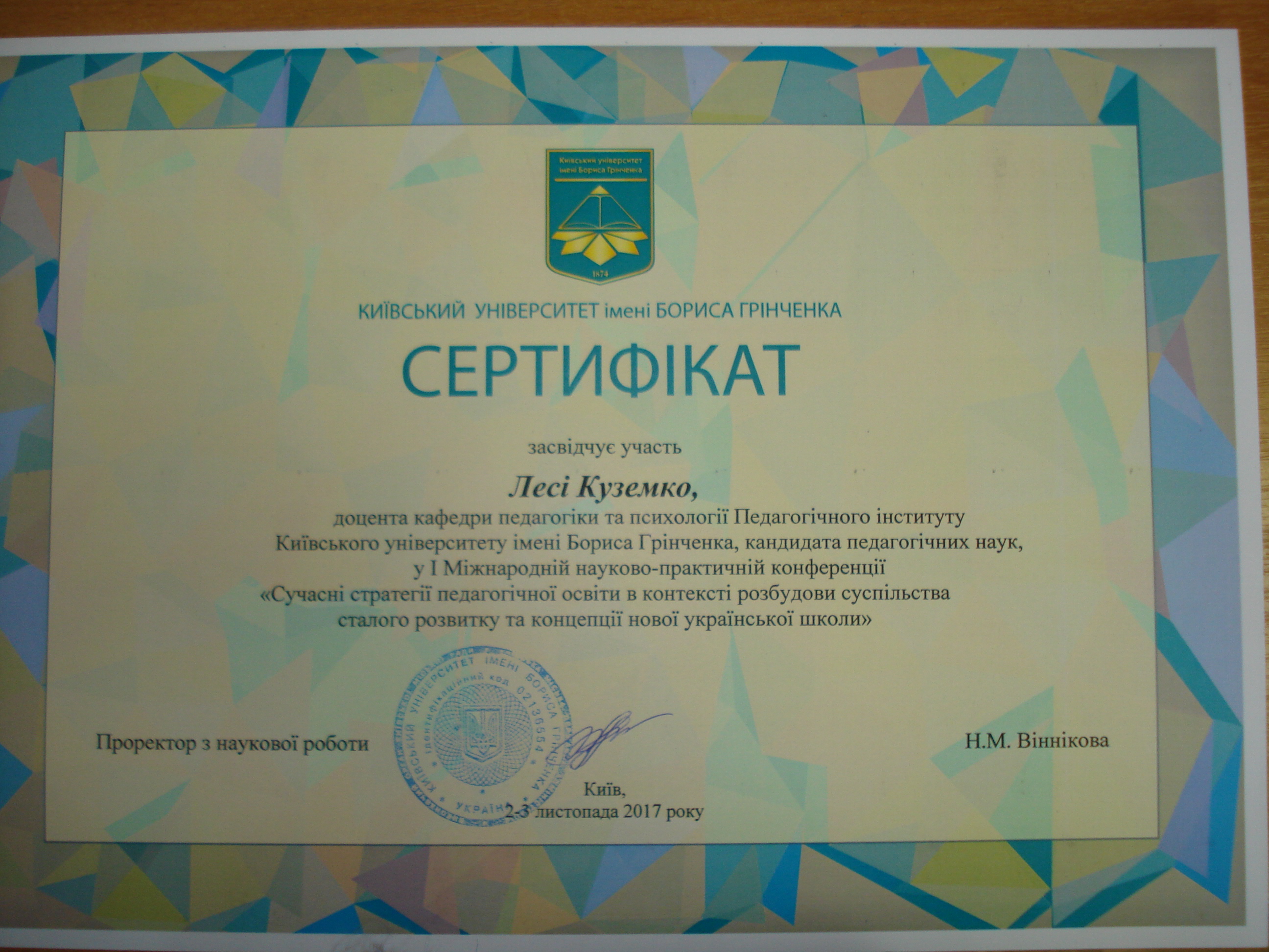 | 6000 | Всеукраїнська науково-практична конференція "Професійна діяльність сучасного педагога в умовах парадигмальних змін" | без доповіді | Україна, Київський університет імені Бориса Грінченка |