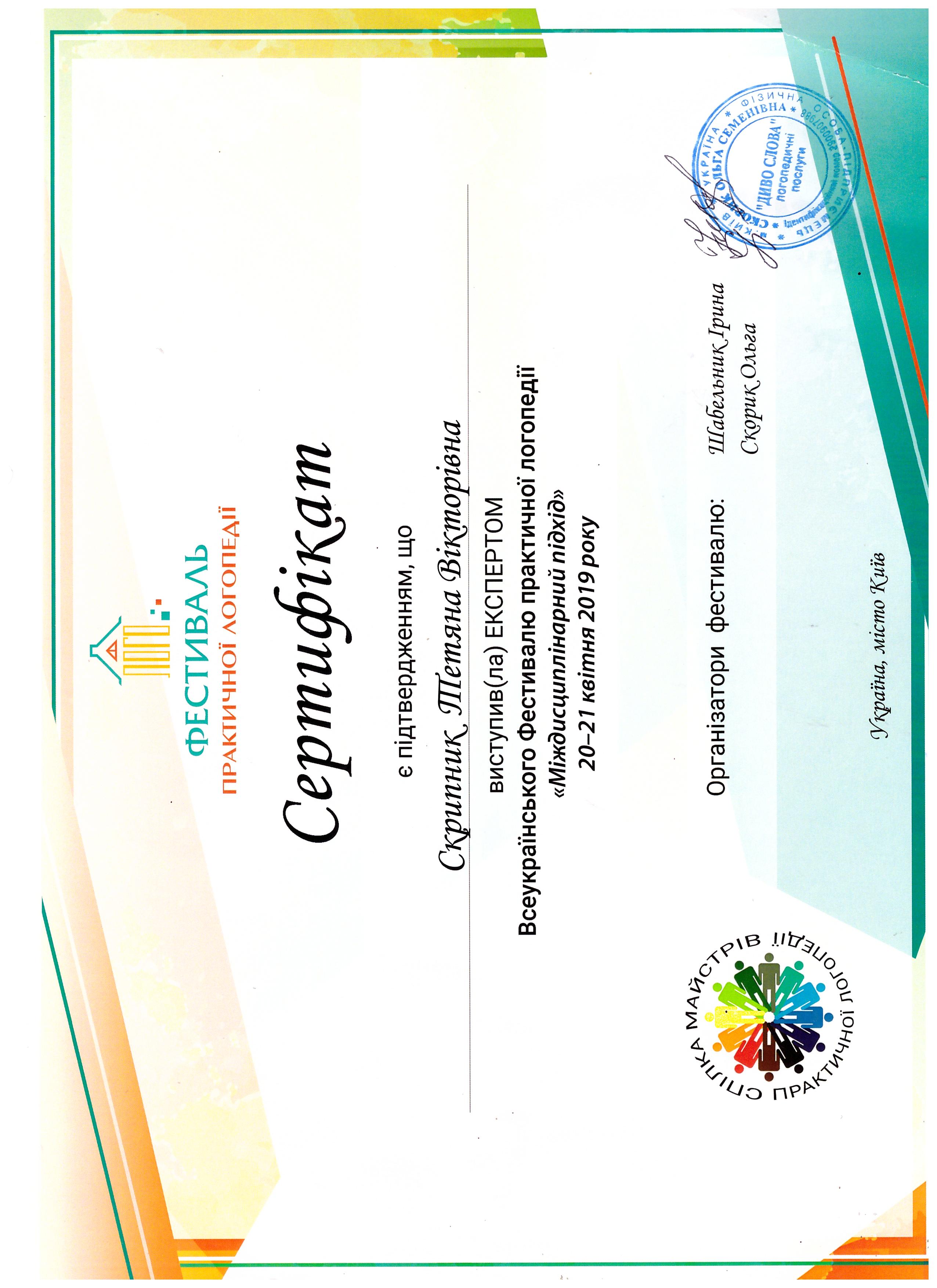 | 4868 | Всеукраїнський фестиваль практичної логопедії "Міждисциплінарний підхід" | Сенсо-моторна інтеграція як передумова комунікативно-мовленнєвого розвитку | м. Київ |