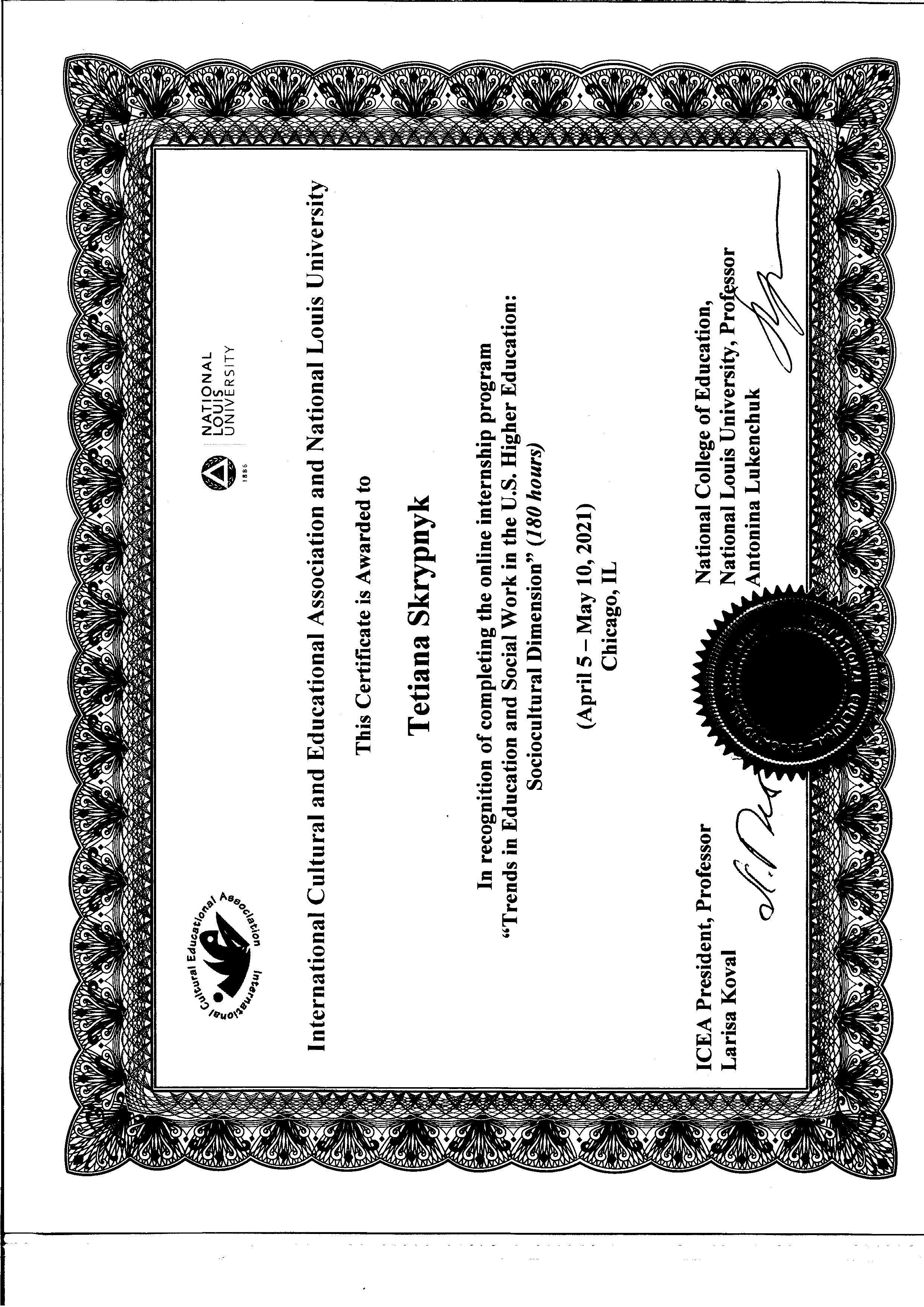 | 8272 | Program of International Cultural and Education Association and National Louis University | Trends in Education and Social in the U.S. Higher Education: Sociocultural Dimension | Chicago (USA, on-lane) |