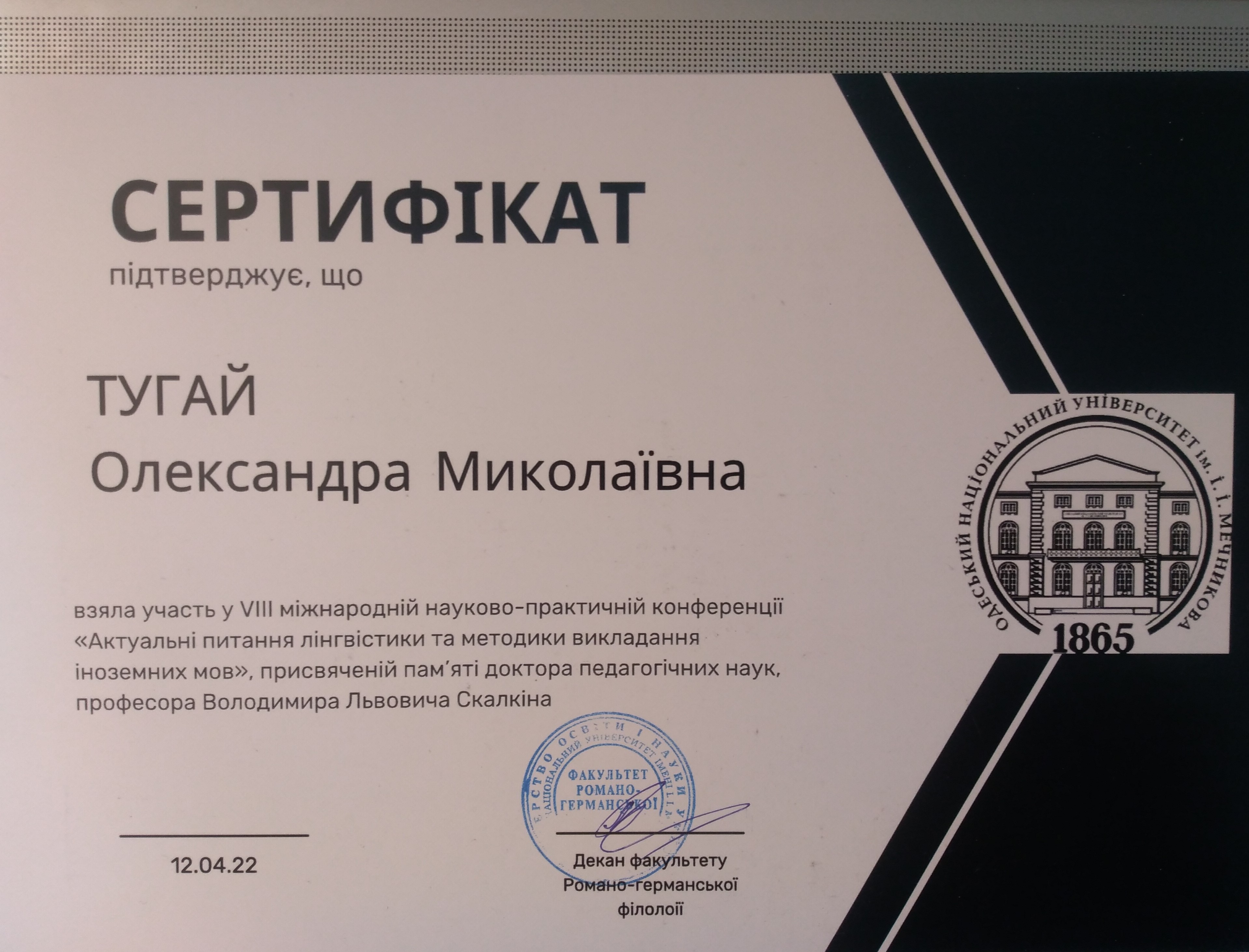 | 622 | Факультет романо-германської філології | Кафедра германської філології | 36.3 | 2 | 2025 | https://www.researchgate.net/profile/Oleksandra_Tuhai |
