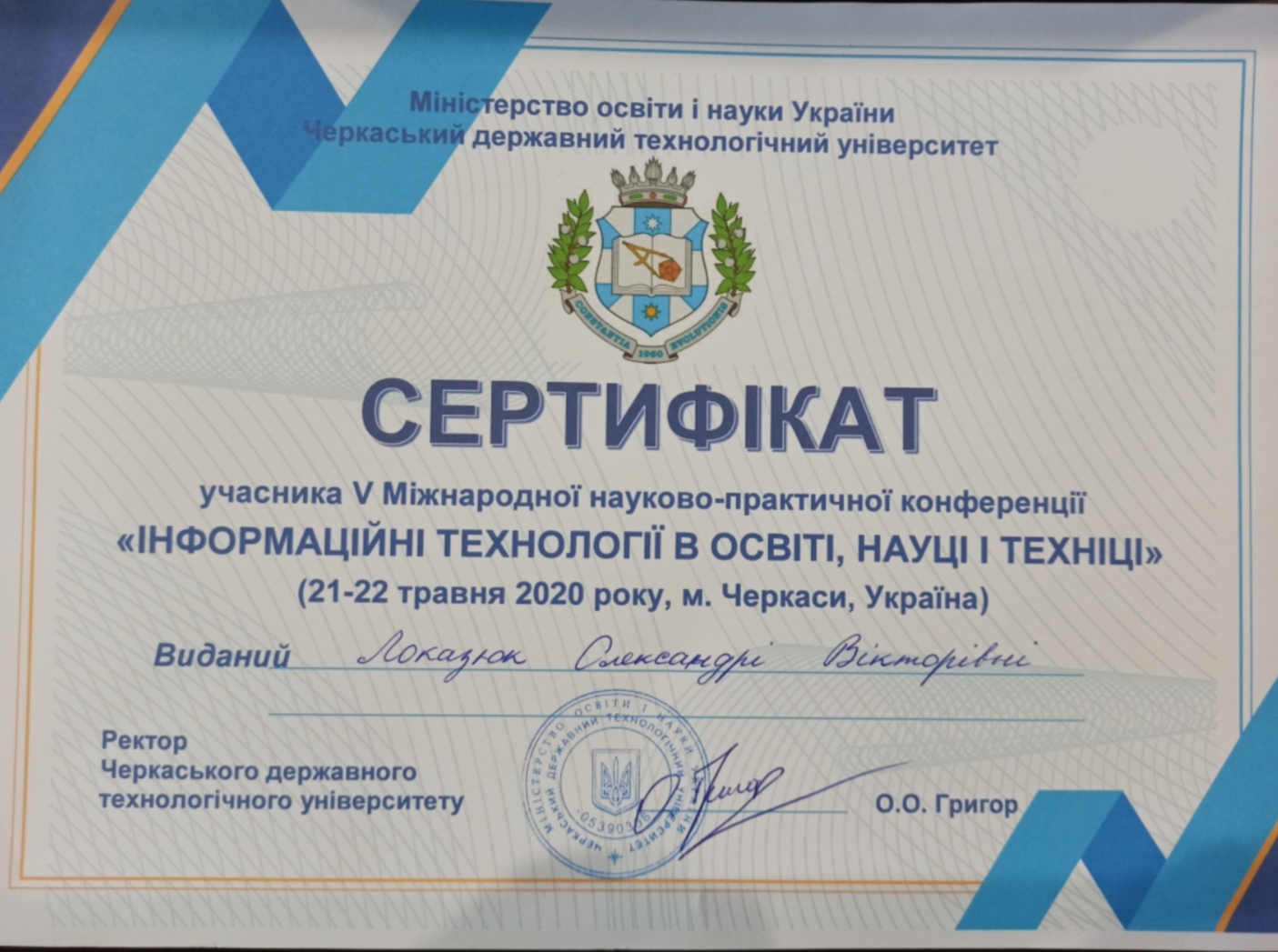| 918 | Факультет інформаційних технологій та математики | Кафедра математики і фізики | 41.5 | 3 | 2024 | https://www.researchgate.net/profile/Oleksandra-Lokaziuk |