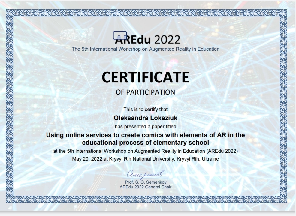 | 8123 | 5th International Workshop on Augmented Reality in Education (AREdu 2022) | Using online services to create comics with elements of AR in the educational process of elementary school | Криворізький державний педагогічний університет. |