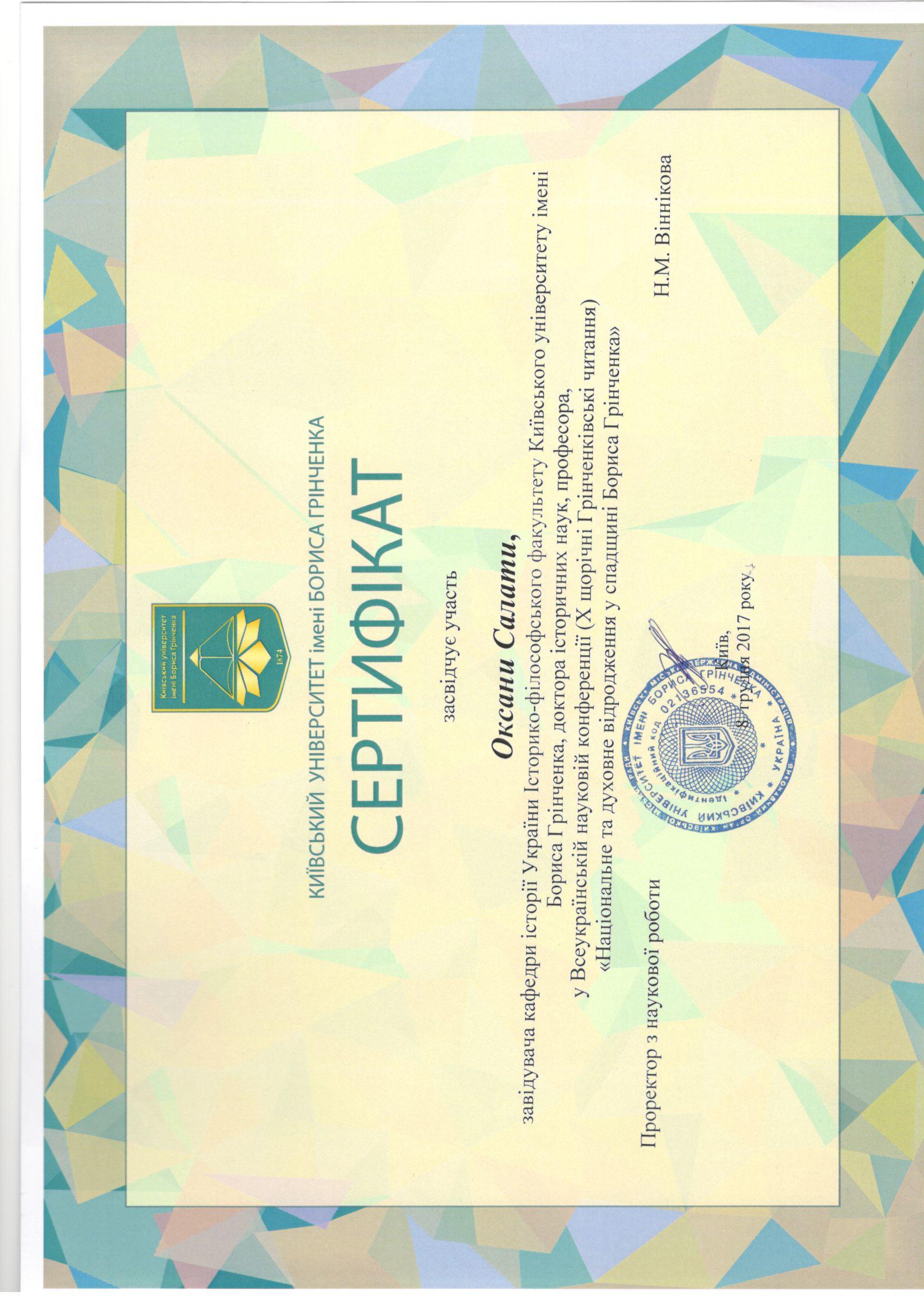 | 844 | Інститут післядипломної освіти | Кафедра історичної та громадянської освіти | 175.6 | 1 | 2022 | https://www.researchgate.net/profile/Oksana-Salata |