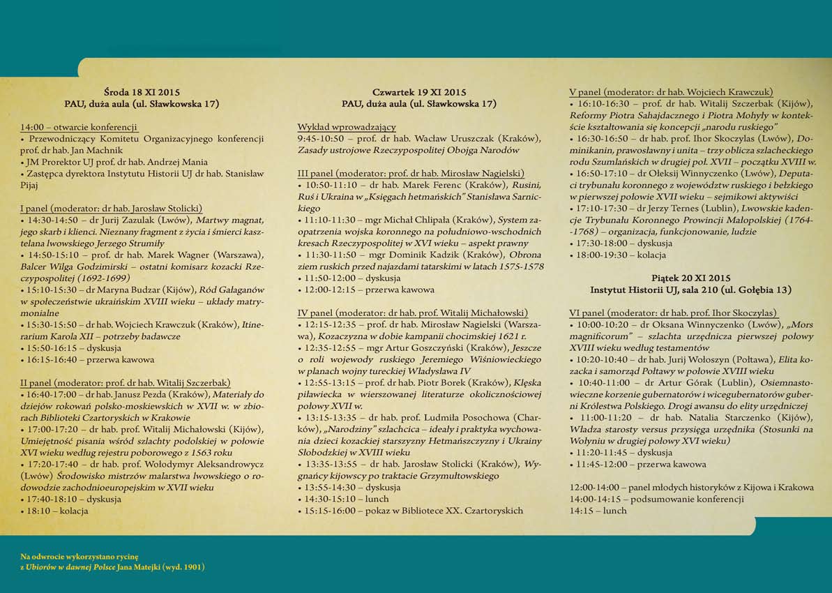 | 2362 | III-й Міжнародний конгрес істориків що досліджують історію Польщі | Від Крева до Любліна. Унії в українській історії та історіографії | Краків, Польща | document.pdf | |