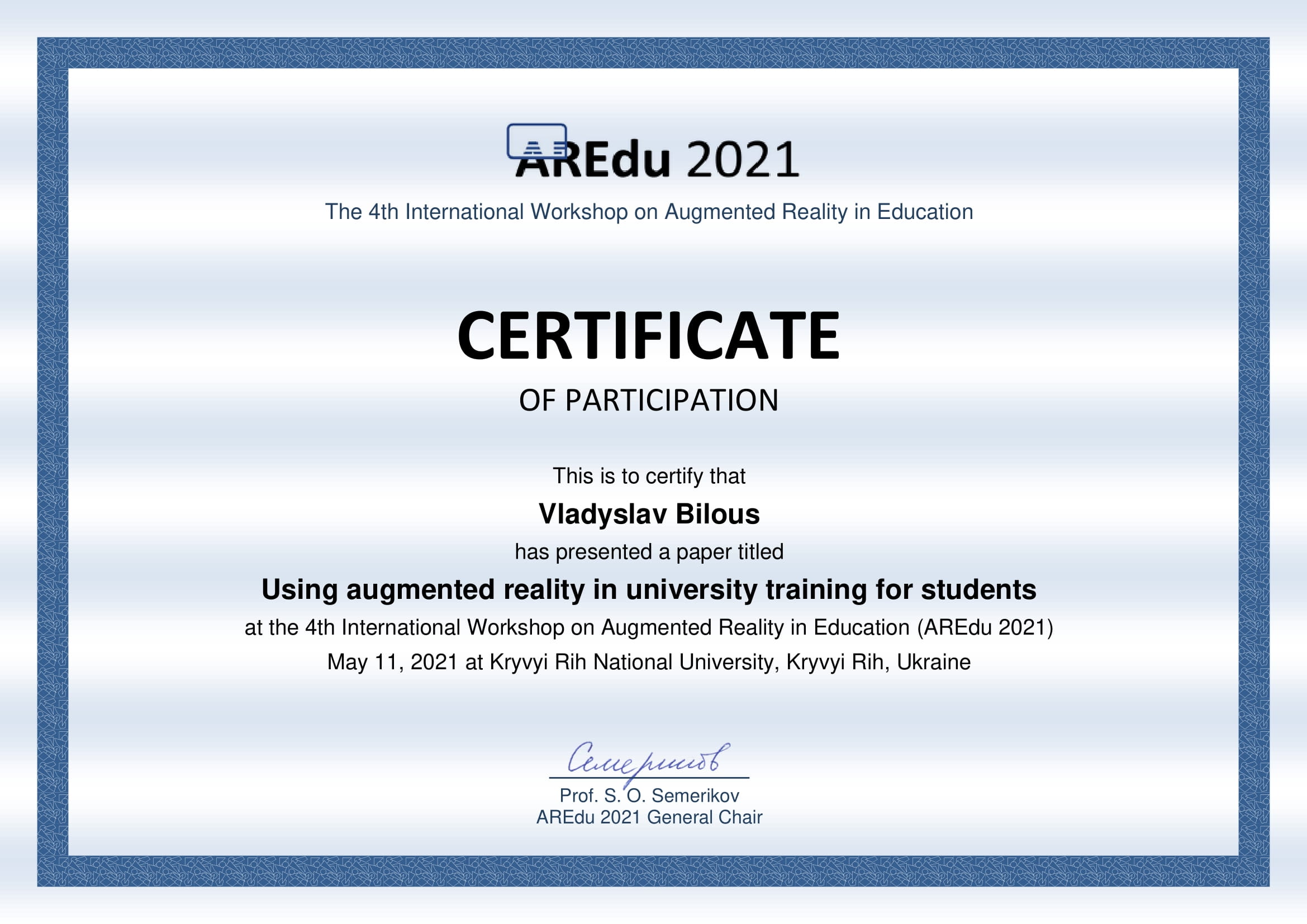 | 37020 | Using augmented reality in university education for future IT specialists: educational process and student research work | |