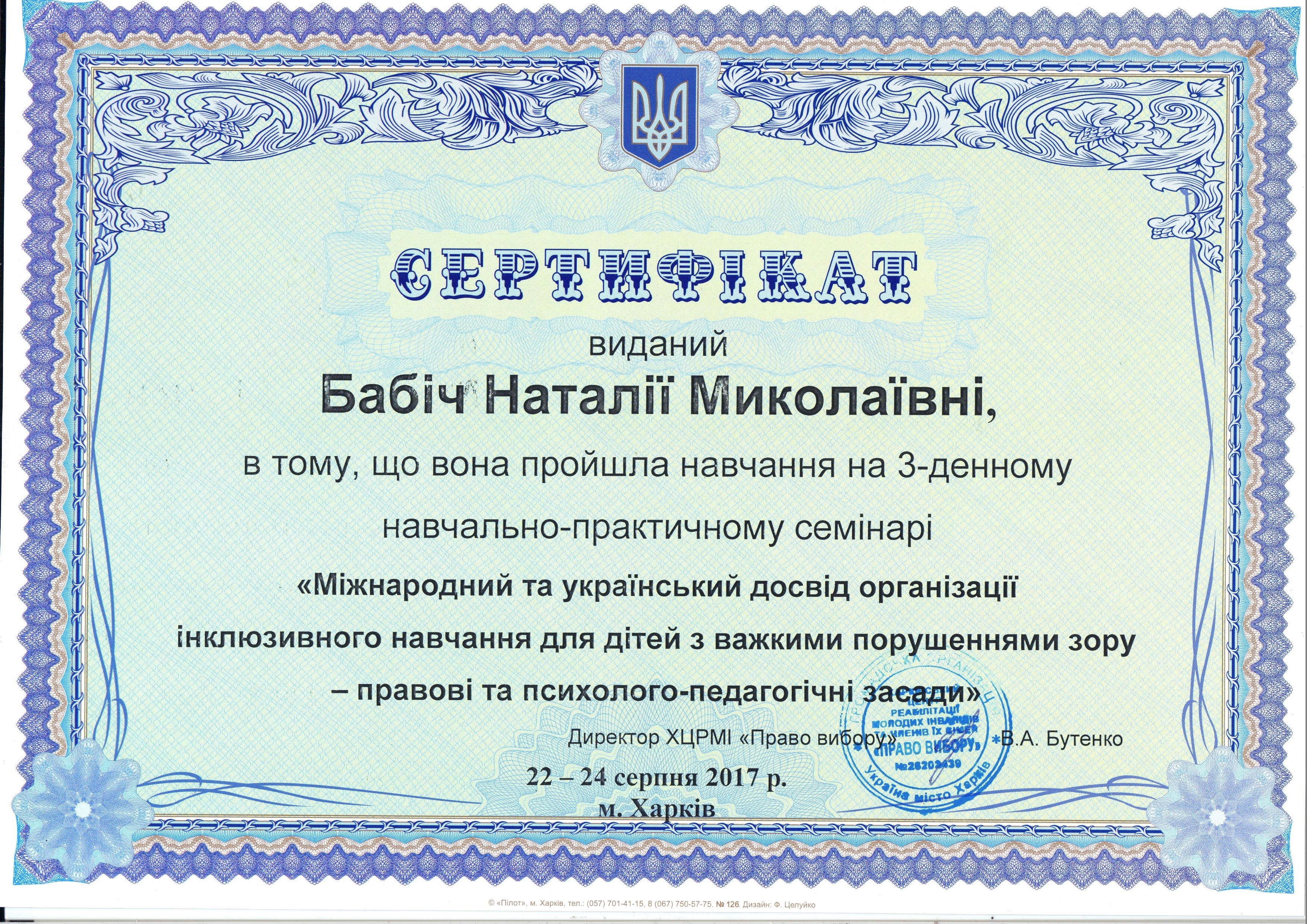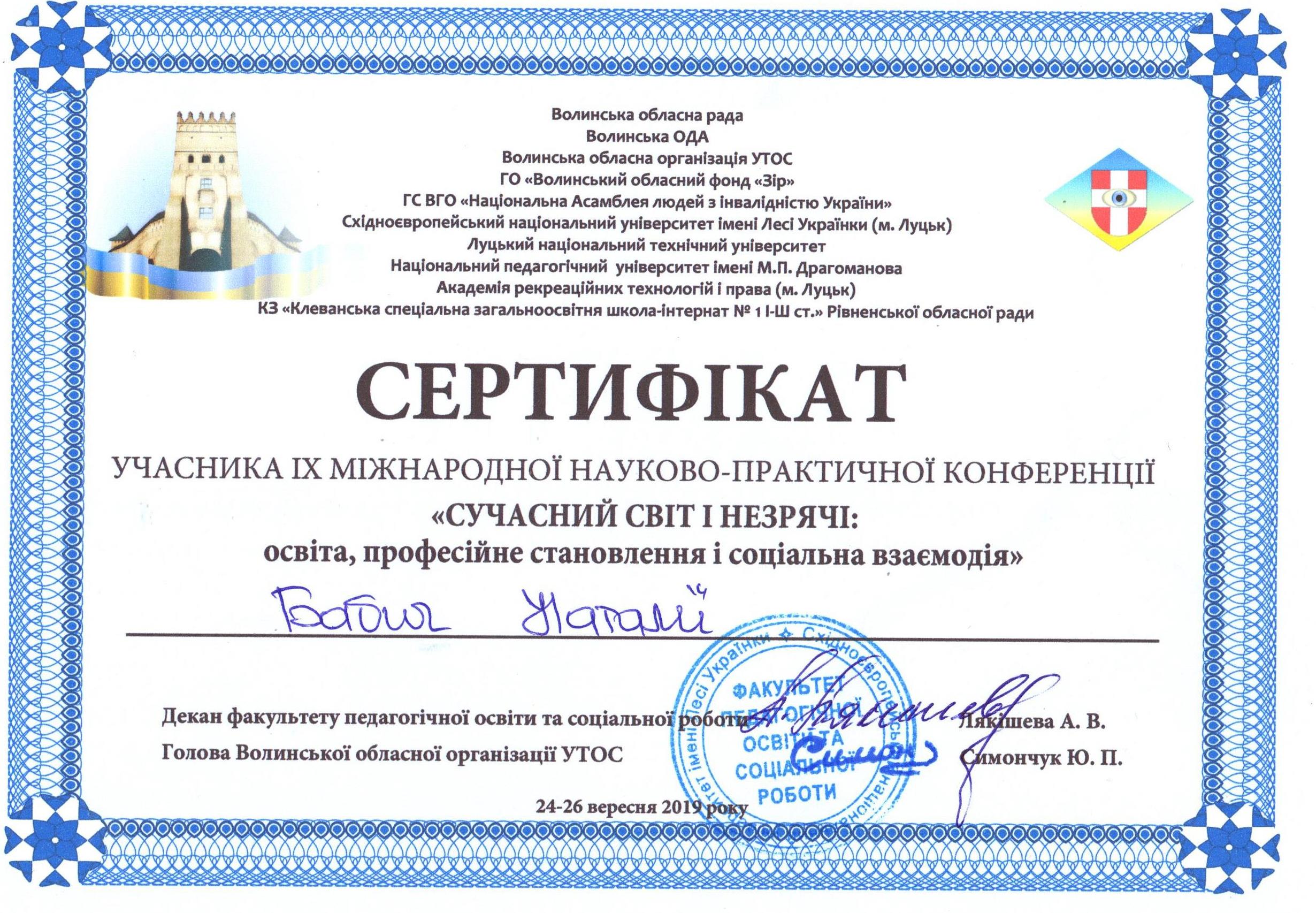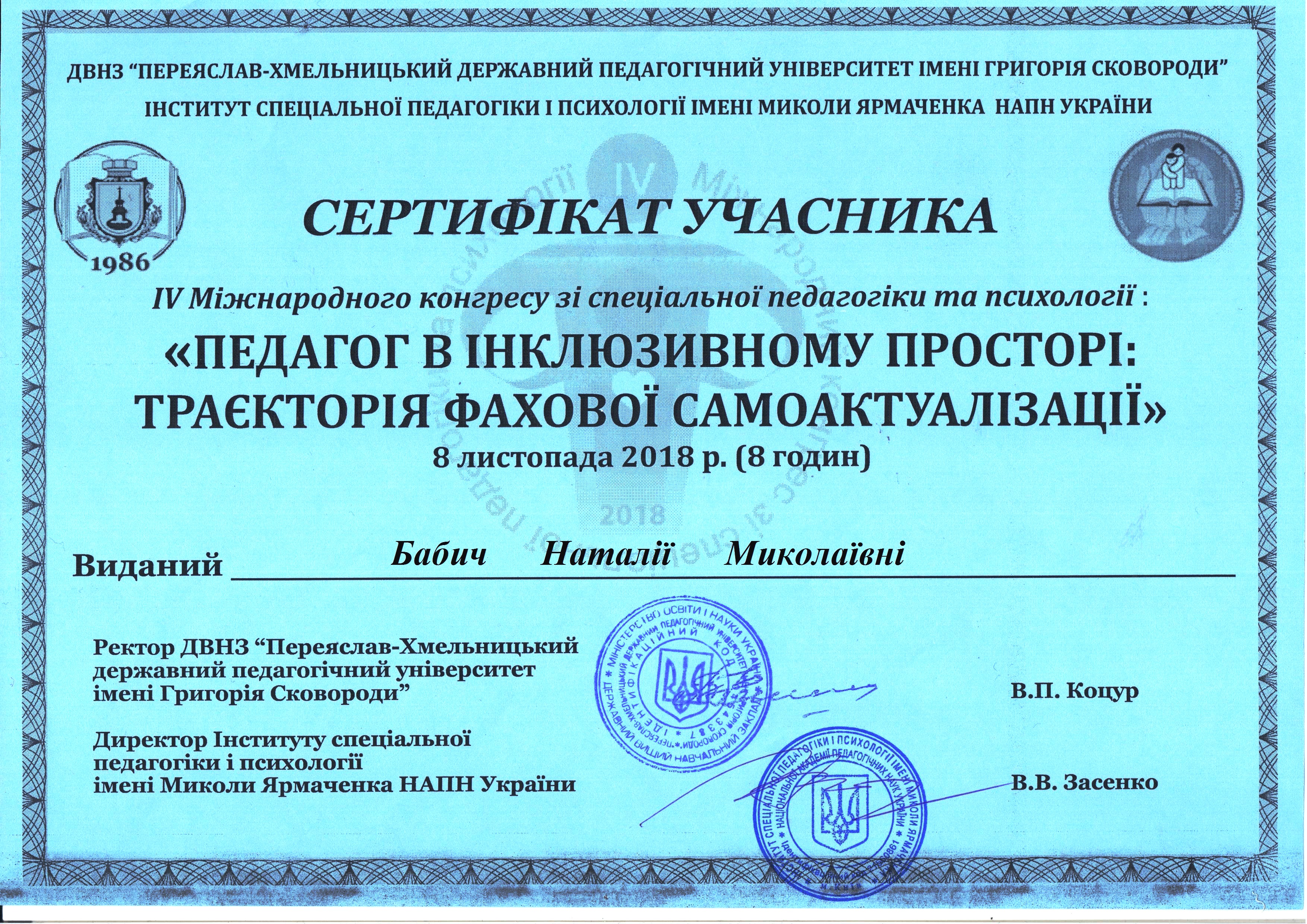 | 7261 | V Міжнародна науково-практична Інтернет-конференція "Актуальні проблеми формування творчої особистості педагога в контексті дошкільної та початкової освіти" | Участь у майстер-класах | м. Вінниця | document.pdf | |