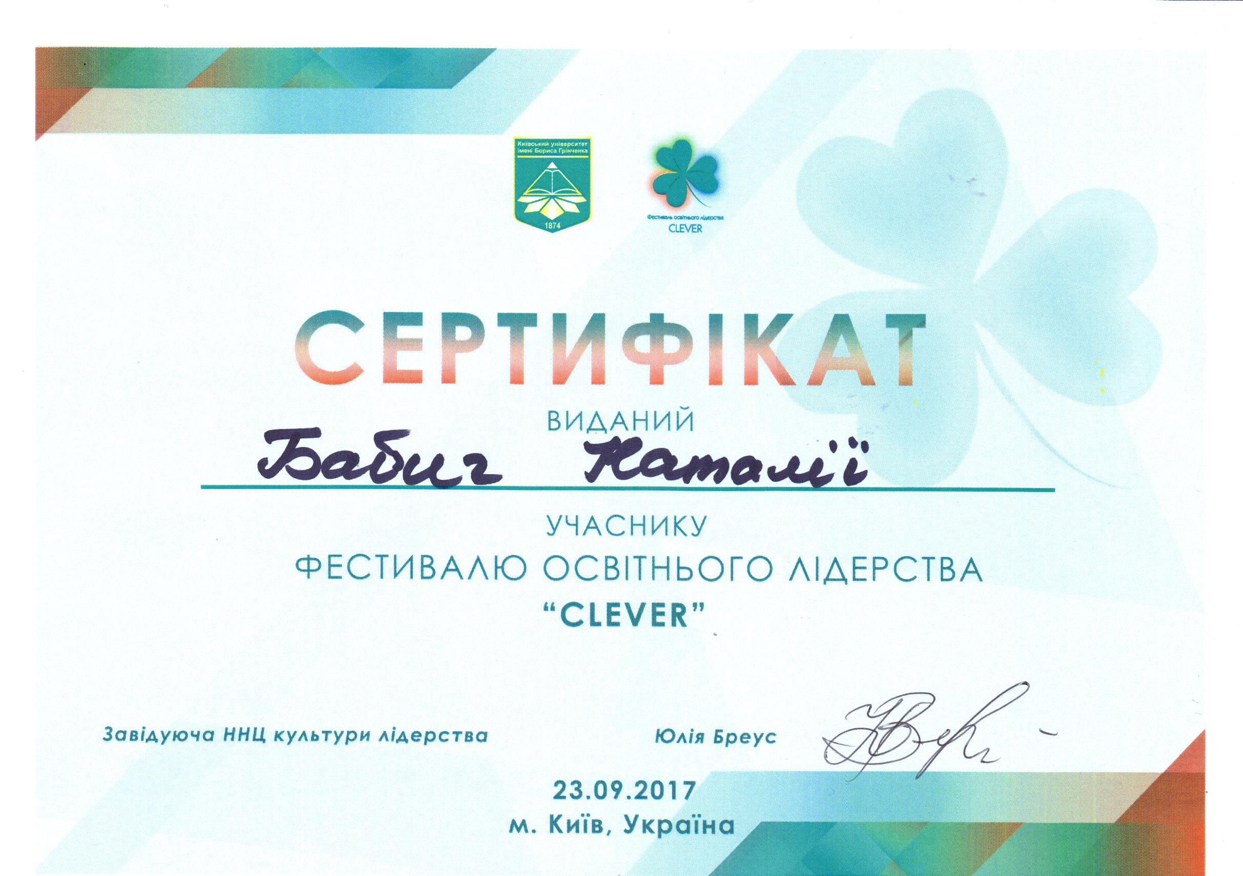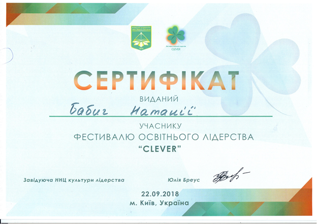 | 2533 | Фестиваль освітнього лідерства «CLEVER» | Участь в панельній дискусії | Київський університет імені Бориса Грінченка |
