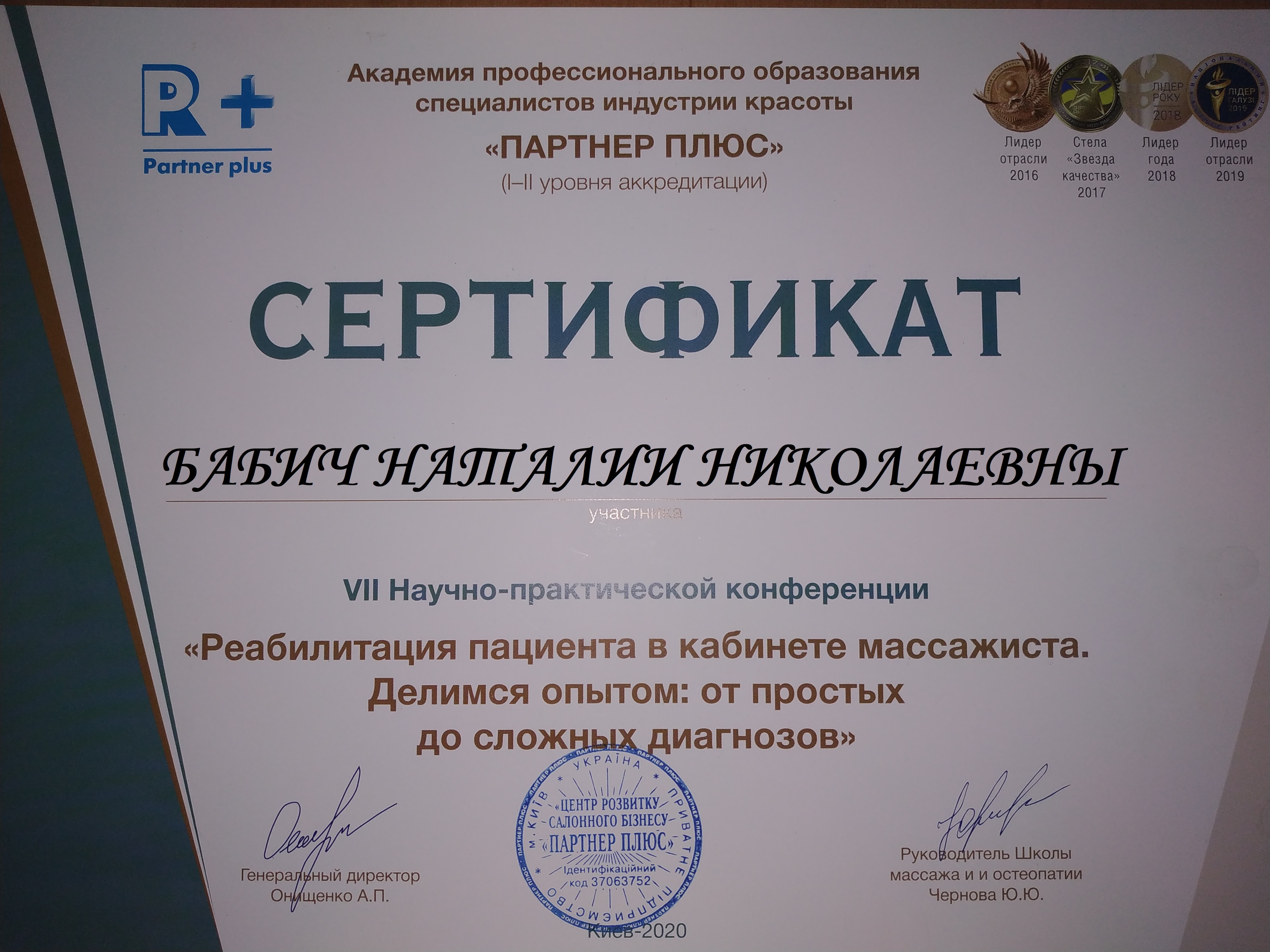 | 3769 | "Діагностична та терапевтична остеопатія" | Використання логопедичного масажу в роботі з дітьми з порушеннями опорно-рухового апарату | м. Київ, ЦРСБ "Партнер+", Школа масажу та естетики тіла | document.PDF | |