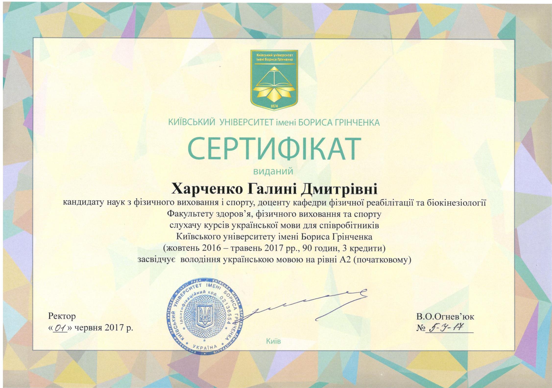 | 2339 | Сертифікат володіння українською мовою А2 | слухач курсів з української мови | Київський університет ім.Бориса Грінченка |