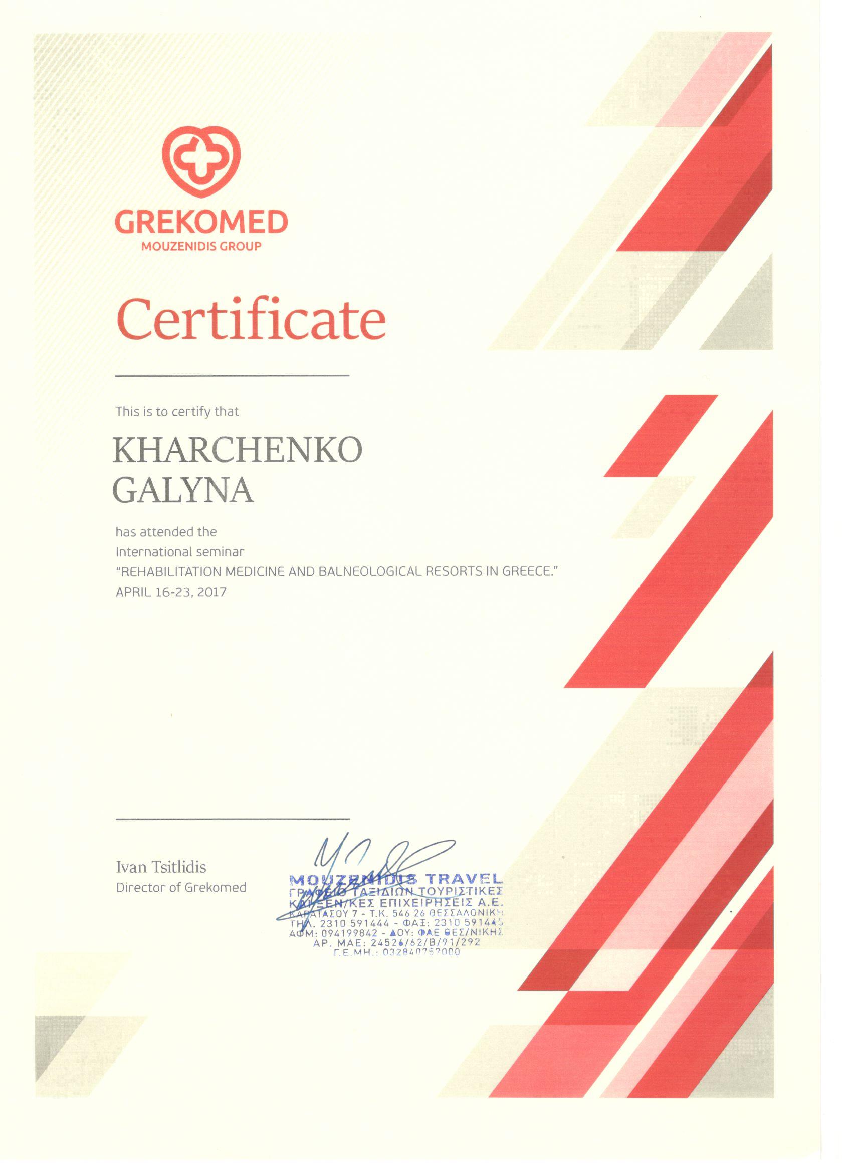 | 2364 | Rehabilitation medicina and balneological resorts in Greece | учасник міжнародного семінару | Greece |