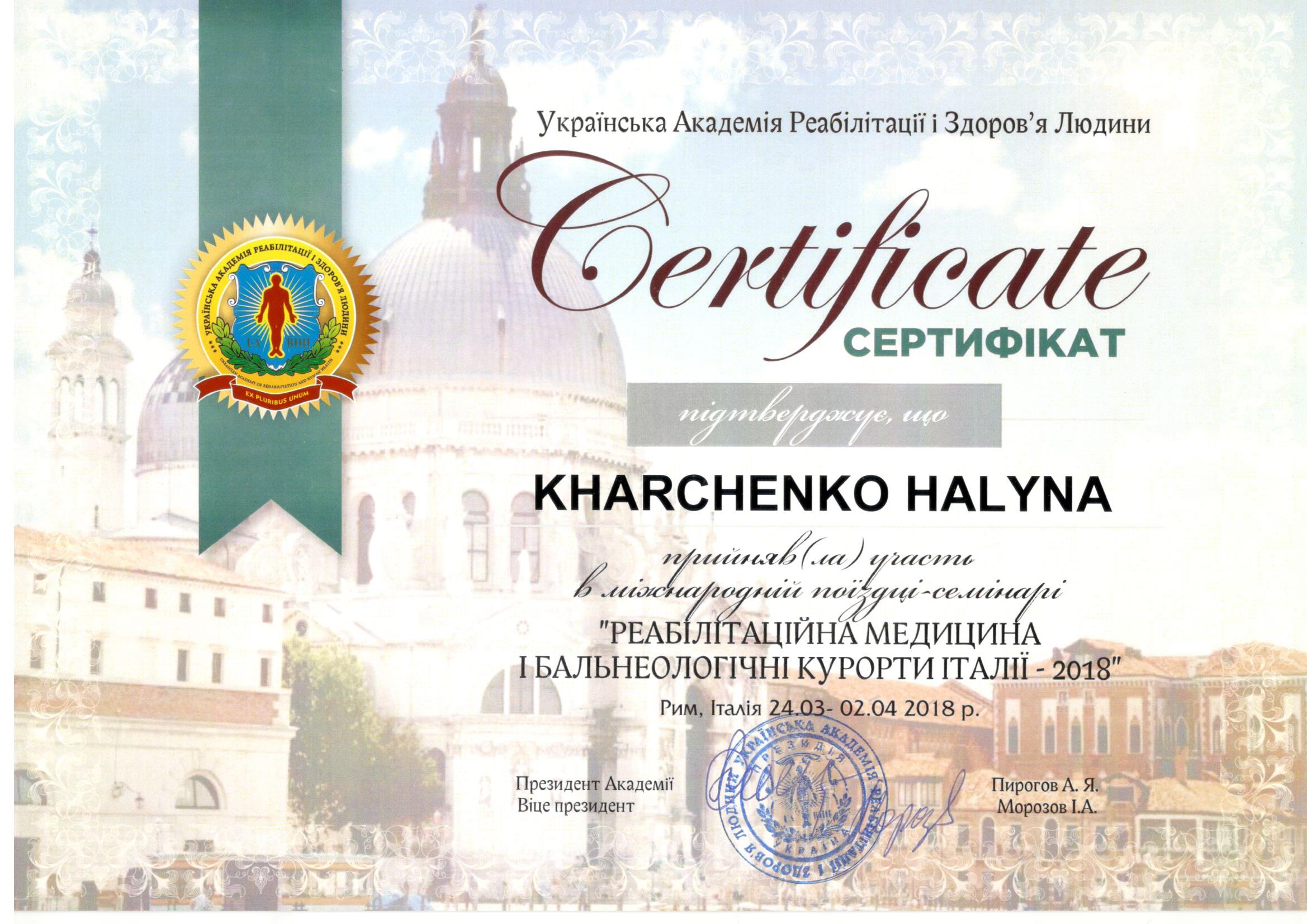 | 3068 | Реабілітаційна медицина і бальнеологічні курорти Італії - 2018 | учасник міжнародного семінару | Рим, Італія |