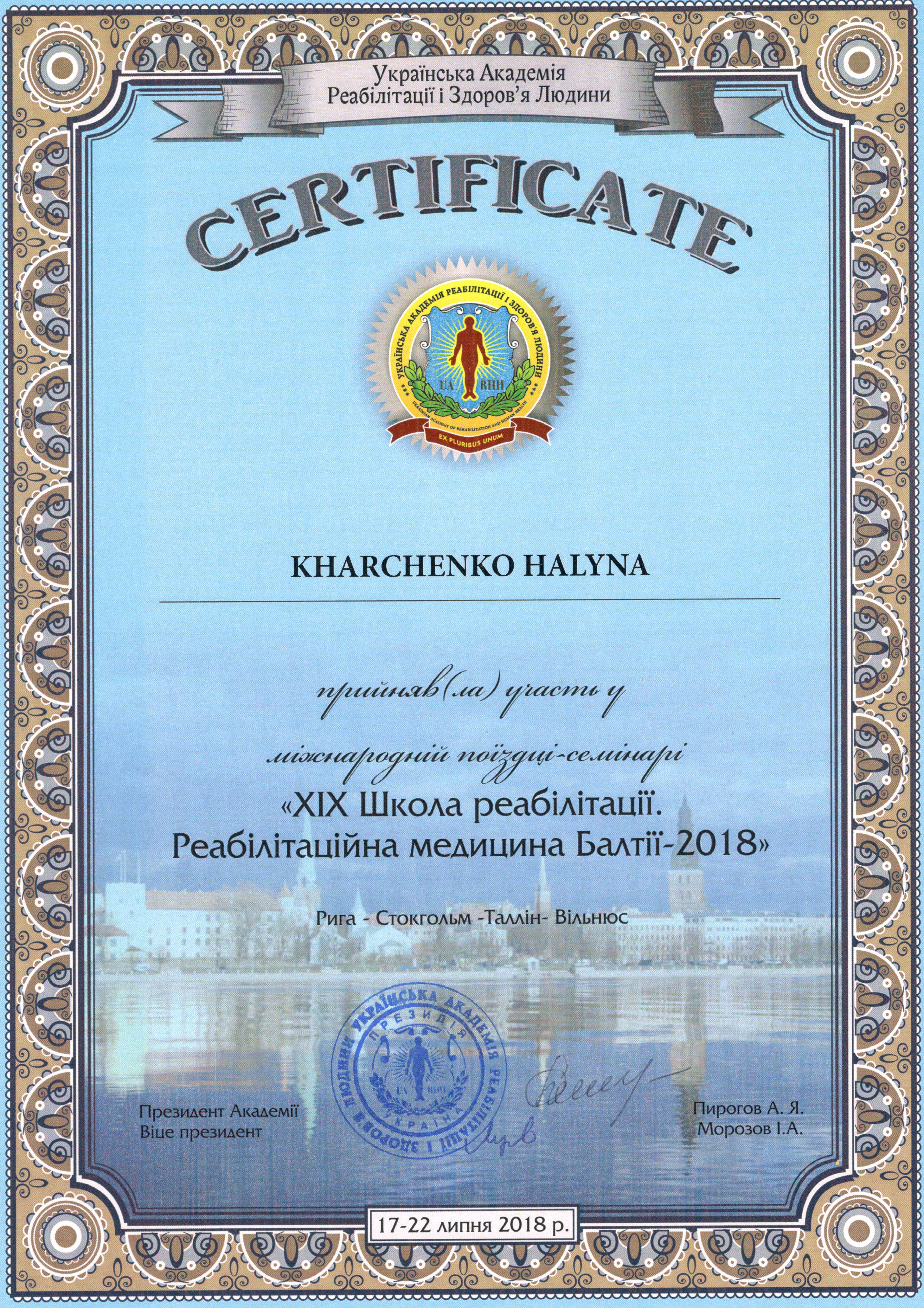 | 3240 | ХІХ Школа реабілітації. Реабілітаційна медицина Балтії - 2018 | учасник міжнародного семінару | Рига-Стокгольм-Таллінн-Вільнюс |