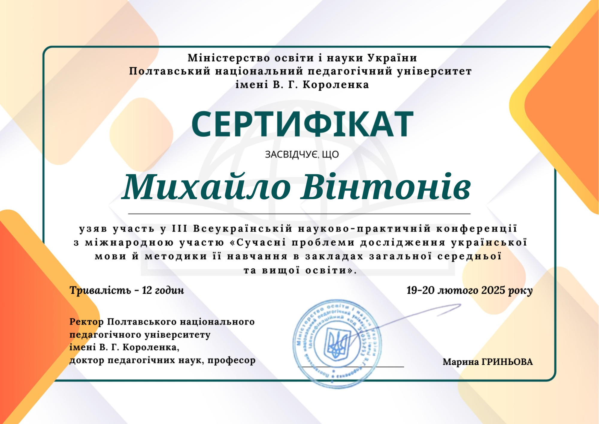 | 548 | Факультет української філології, культури і мистецтва | Кафедра української мови | 46.8 | 3 | 2025 | https://www.researchgate.net/profile/Mykhailo_Vintoniv |