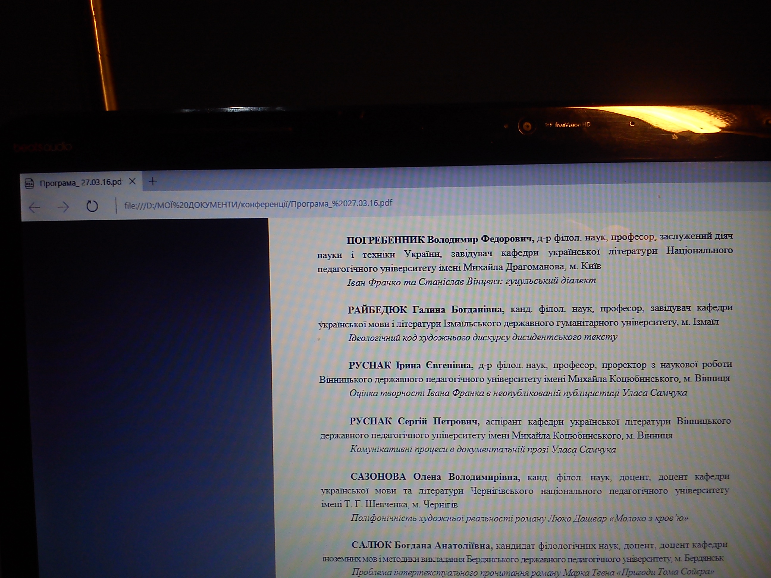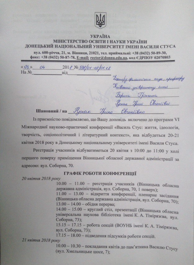 | 1181 | V Всеукраїнська наукова конференція 'Творчість Павла Богацького в контексті української літератури ХХ століття' | 'Мала літературна енциклопедія' (1948-1950) Павла Богацького | Вінницький державний педагогічний університет імені Михайла Коцюбинського |