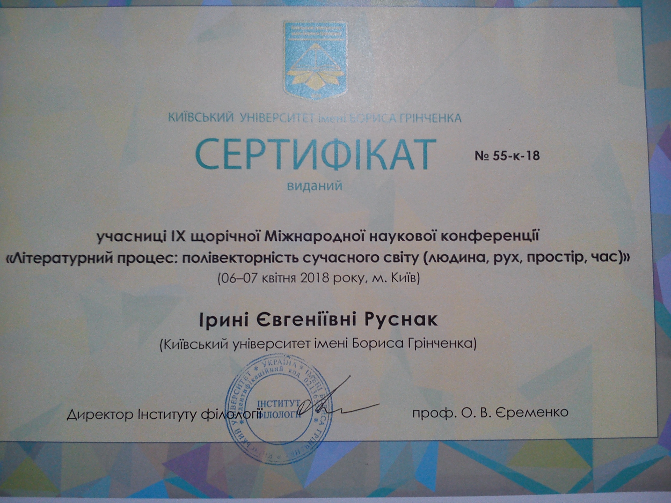 | 3626 | Літературний процес: полівекторність сучасного світу (людина, рух, простір, час) | ПОЕТИКА ТРЕВЕЛОГУ «ВРАЖІННЯ З ПОДОРОЖІ ПО ЕВРОПІ» (1939) ВОЛОДИМИРА БЛЬОНДИНЕНКА | Київський університет імені Бориса Грінченка |