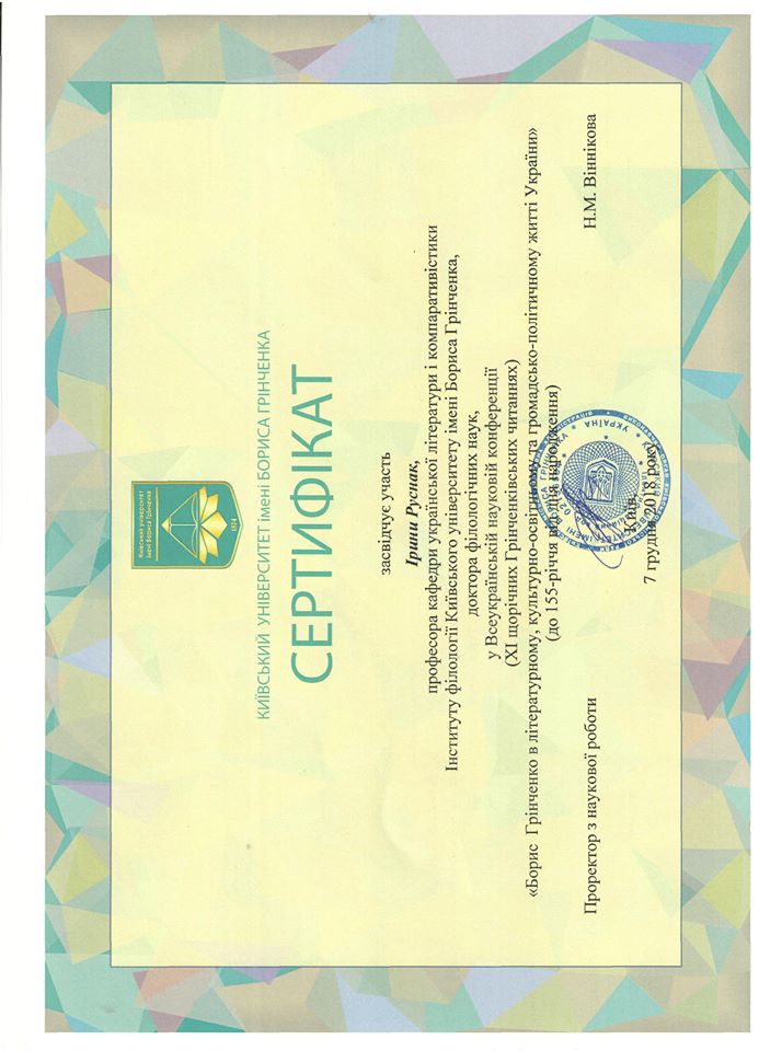 | 25 | Факультет української філології, культури і мистецтва | Кафедра української літератури, компаративістики і грінченкознавства | 56.4 | 1 | 2025 | https://www.researchgate.net/profile/Iryna_Rusnak |