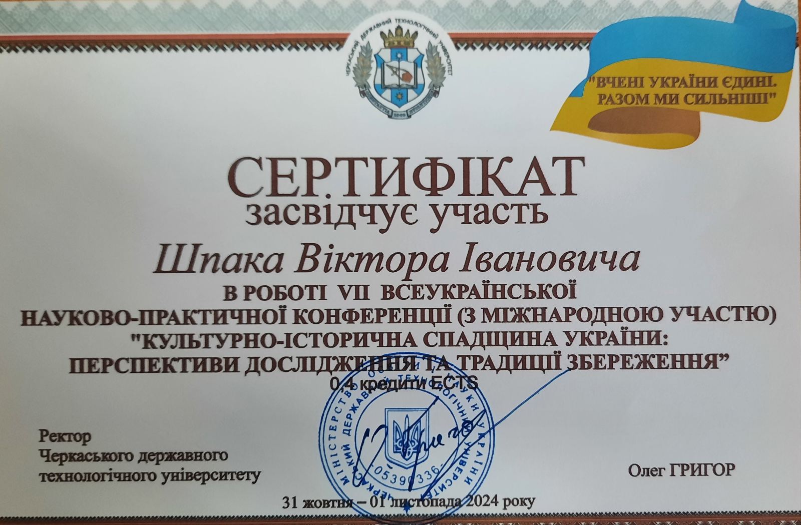 | 8326 | V Всеукраїнської науково-практичної конференції (з міжнародною участю) «КУЛЬТУРНО-ІСТОРИЧНА СПАДЩИНА УКРАЇНИ: ПЕРСПЕКТИВИ ДОСЛІДЖЕННЯ ТА ТРАДИЦІЇ ЗБЕРЕЖЕННЯ» | Освіта в період війни | Черкаси: ЧДТУ | document.pdf | |