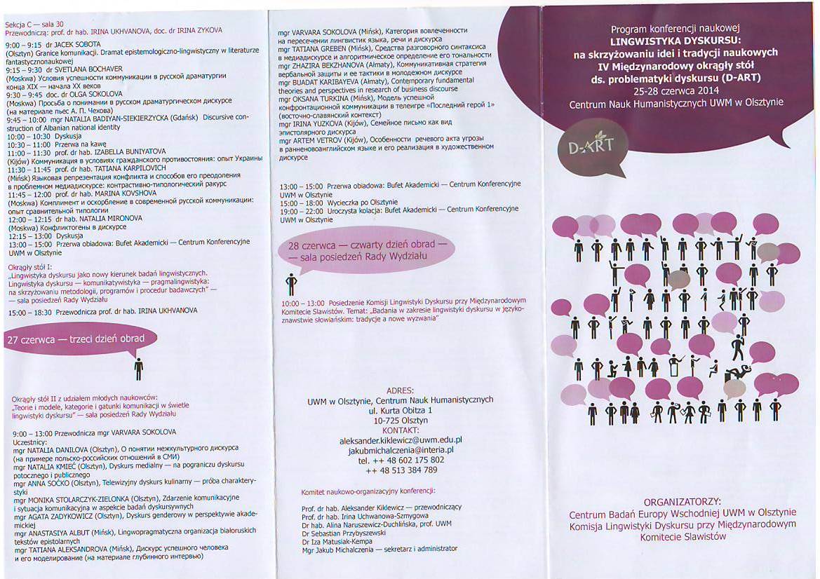 | 85 | Lingwistyka dyskursu: na skrzyzowaniu idei i tradycji naukowych | Коммуникация в условиях гражданского противостояния: опыт Украины | Uniwersytet Warminsko-Mazurski w Olsztynie |
